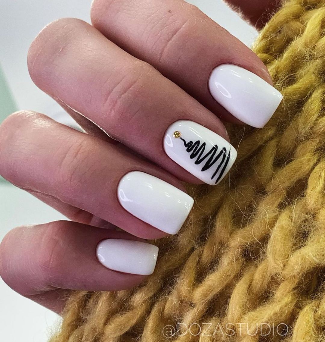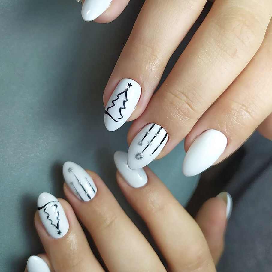 Современный нейл-арт располагает самыми разными приспособлениями для создания стильного маникюра. Если рисовать кистью для вас сложно, обратите внимание на специальные маркеры. Необязательно рисовать традиционную елочку, маркером можно создать новогоднее дерево в графическом, минималистичном или даже абстрактном стиле.