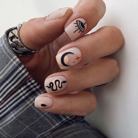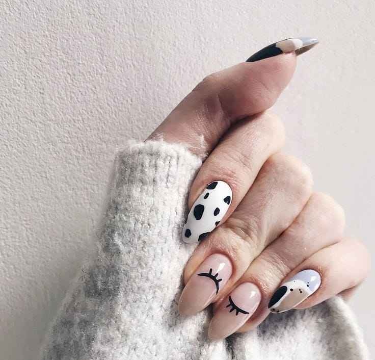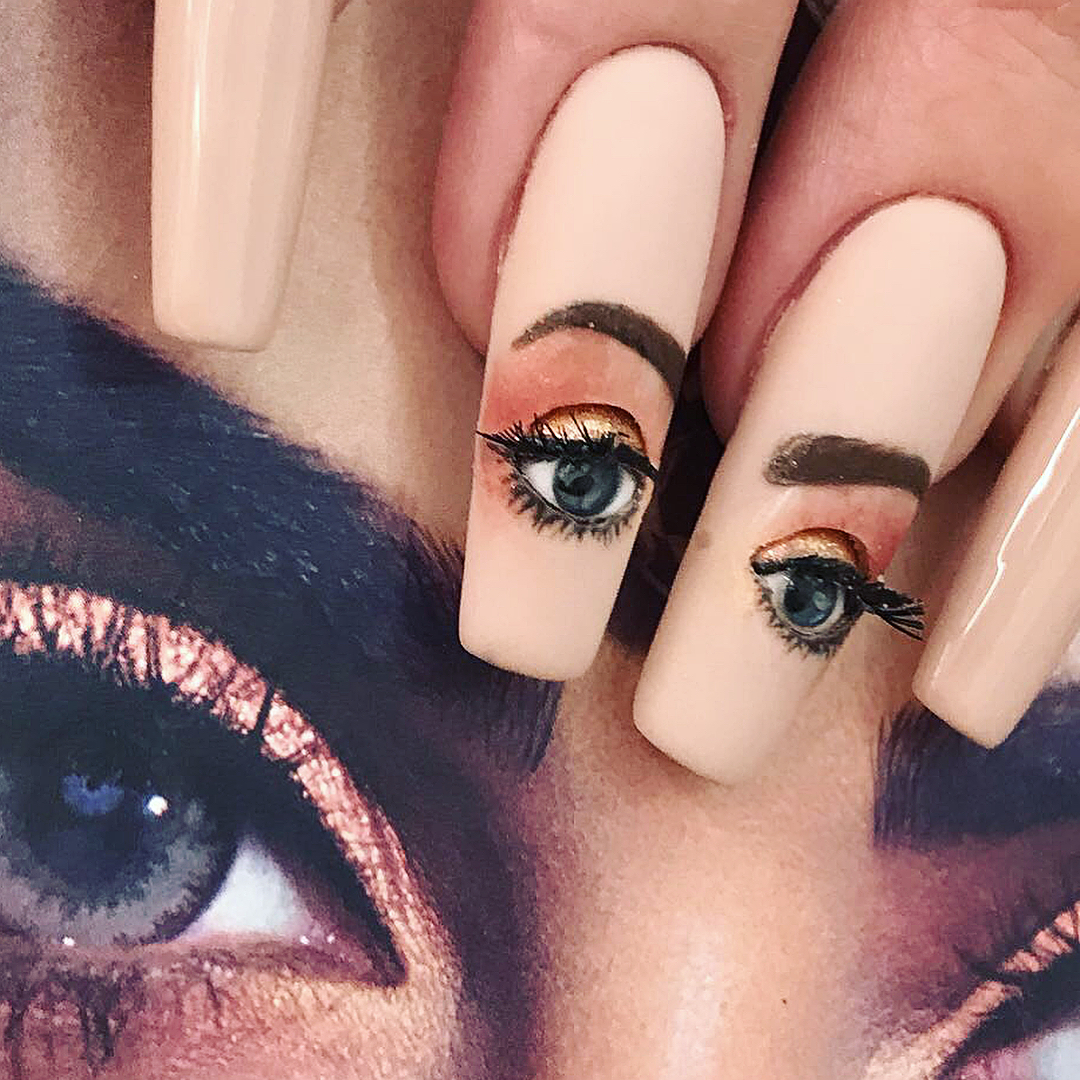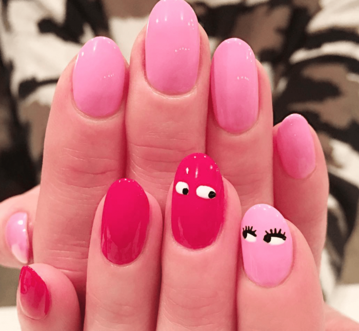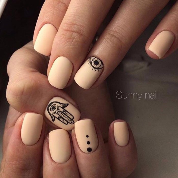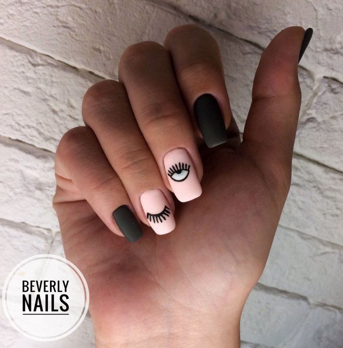 Рекомендуем поиграть с текстурами. Например, для выделения вы можете выбрать один ноготок на руке и оформить его матовым тоном, нарисовав глаза, реснички или даже лицо.