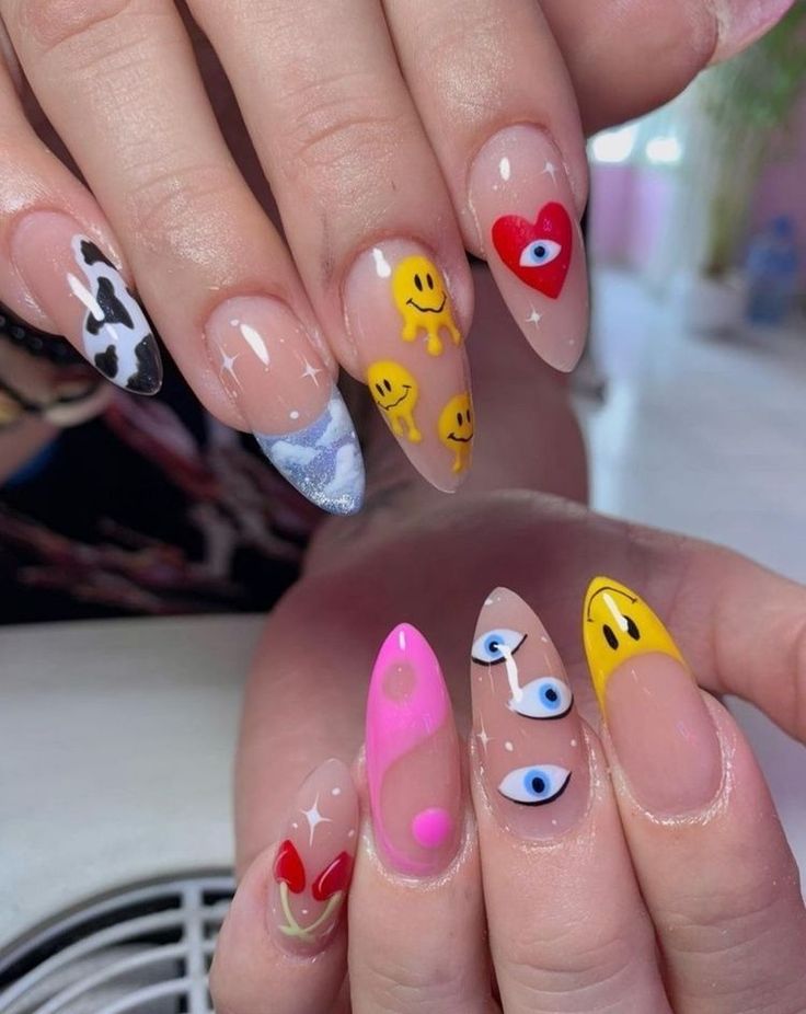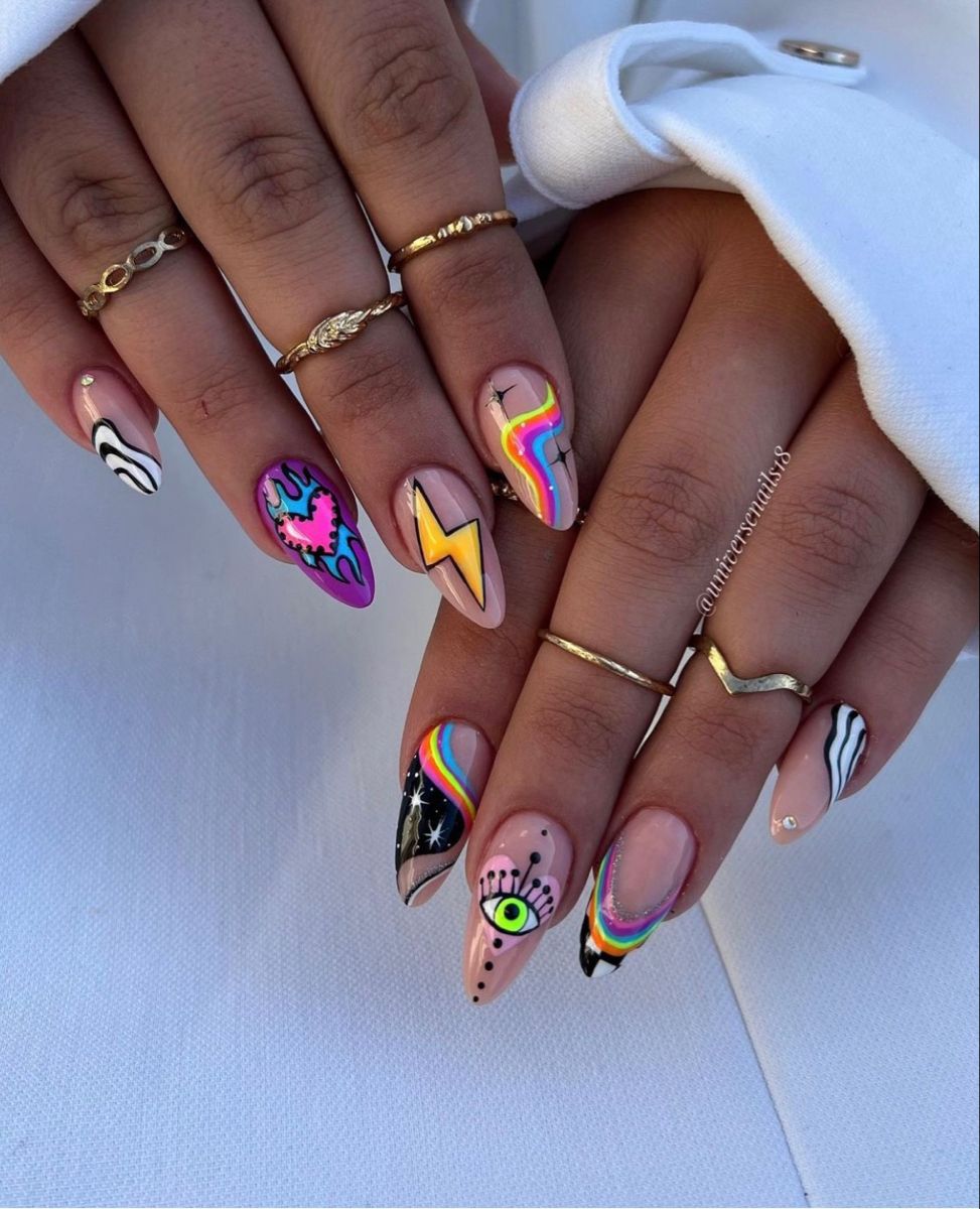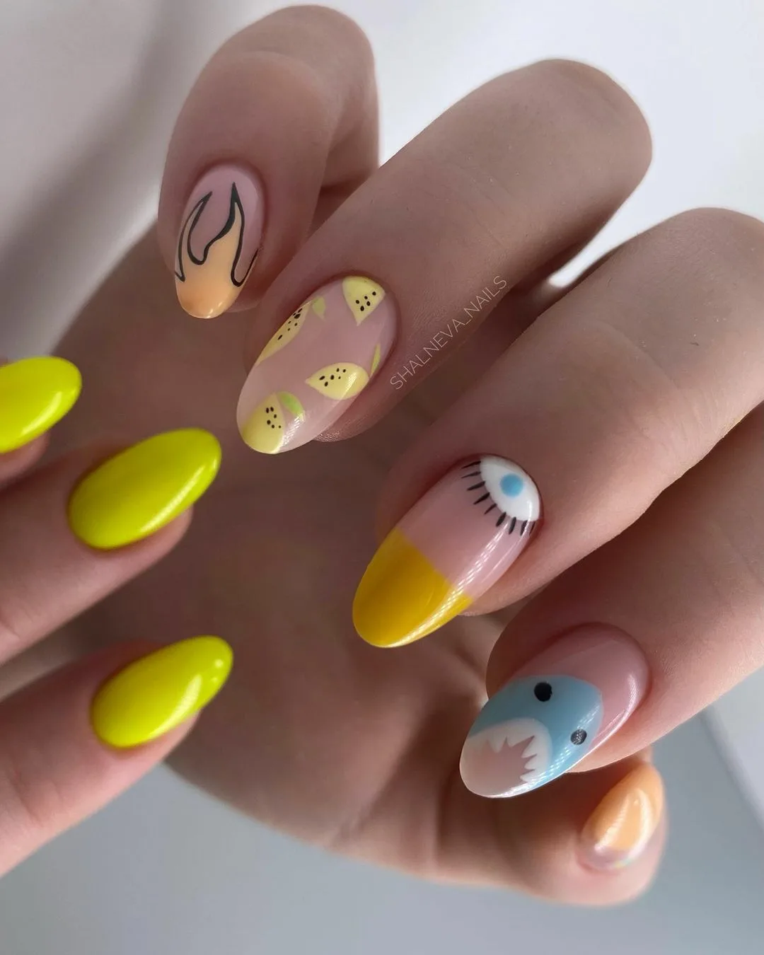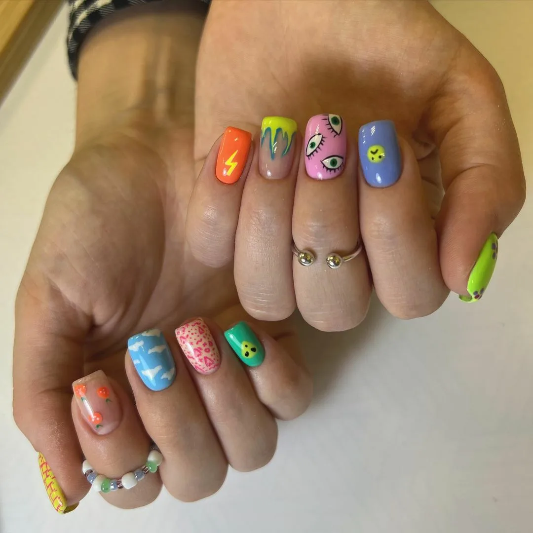 Рекомендуем поиграть с текстурами. Например, для выделения вы можете выбрать один ноготок на руке и оформить его матовым тоном, нарисовав глаза, реснички или даже лицо.