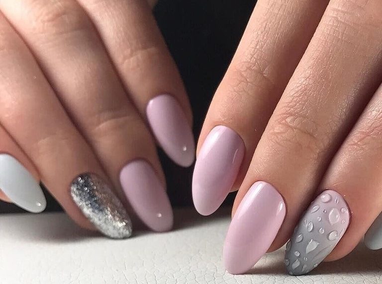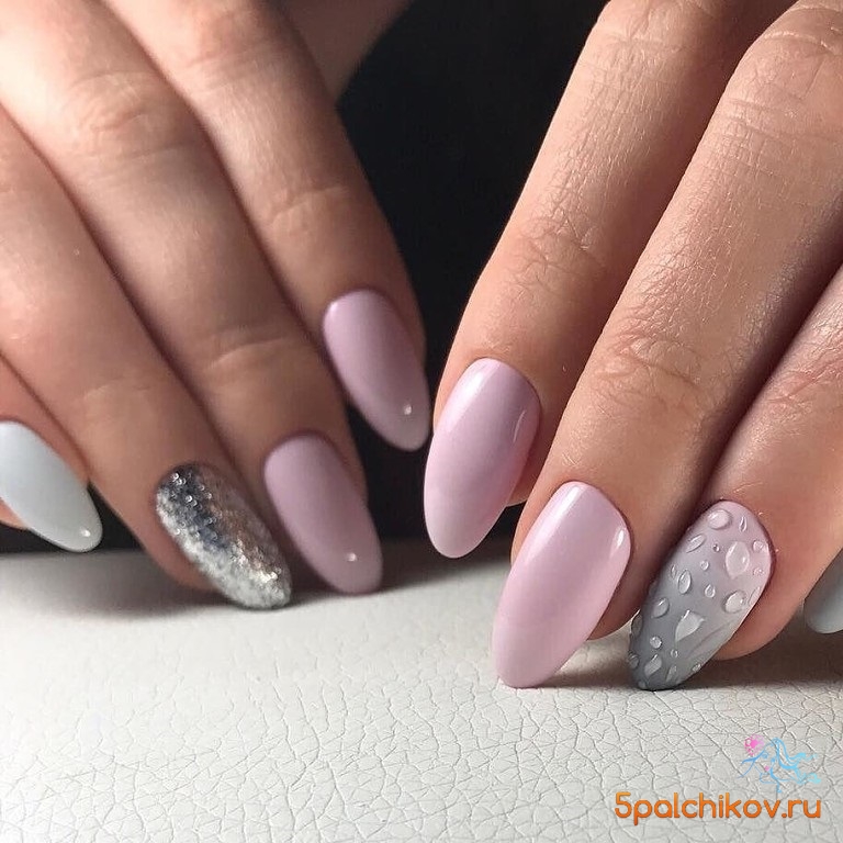 - Маникюр с каплями на разную длину ногтей