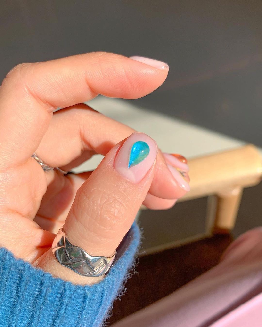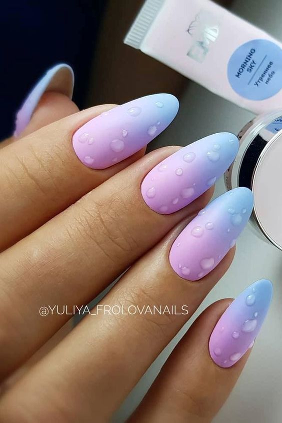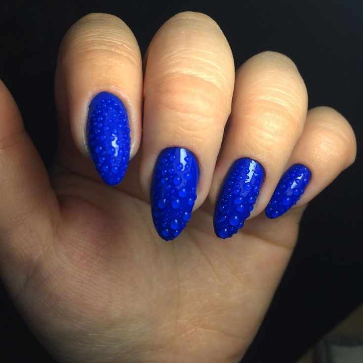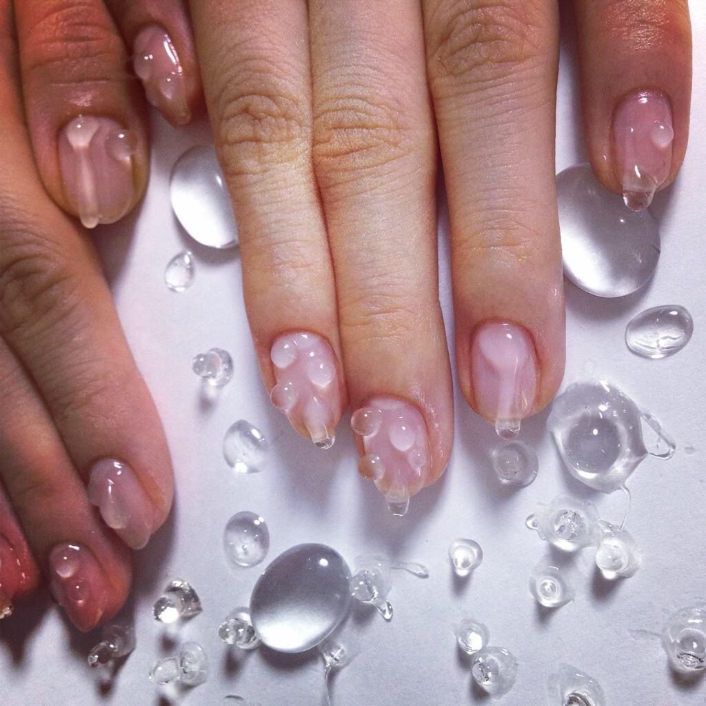 Совет: учтите, что капельки должны повторять природную форму, то есть быть не круглыми, а словно стекать по ногтю. Для создания такого эффекта нужно будет выбрать правильные материалы.