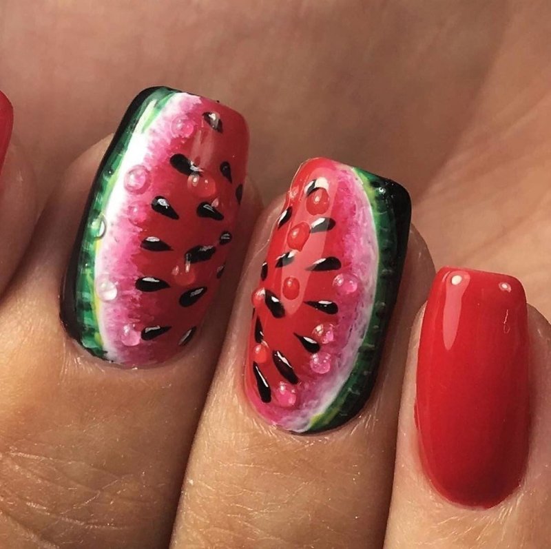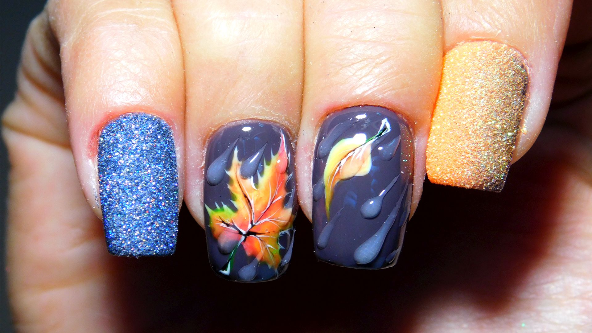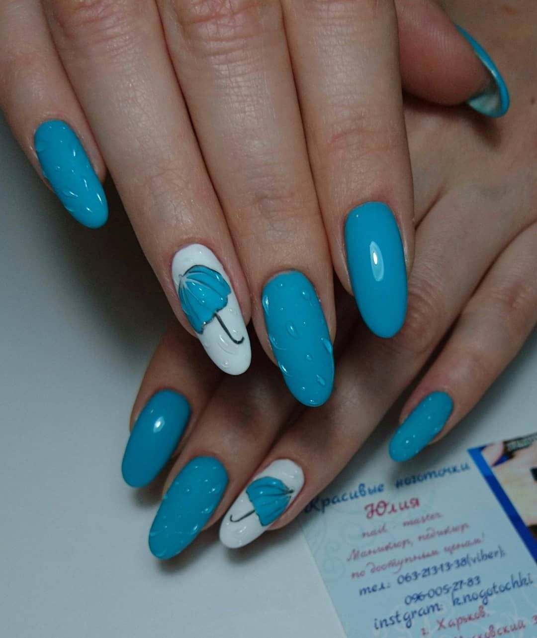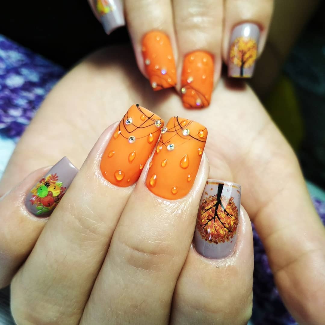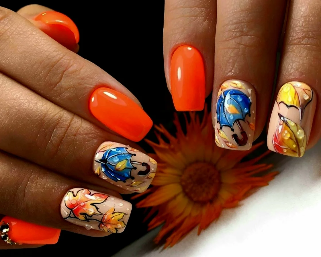 Маникюр с каплями дождя, скорее всего, появился именно как дополнение к рисункам на ногтях. Можно ли представить осенний маникюр с зонтиком или оранжевыми листьями без стекающих водных потоков? Конечно, нет. Капли добавляют декора натуральности. Создается эффект словно вы смотрите через окно на улицу. А для летнего маникюра капельки помогают создать эффект свежести.