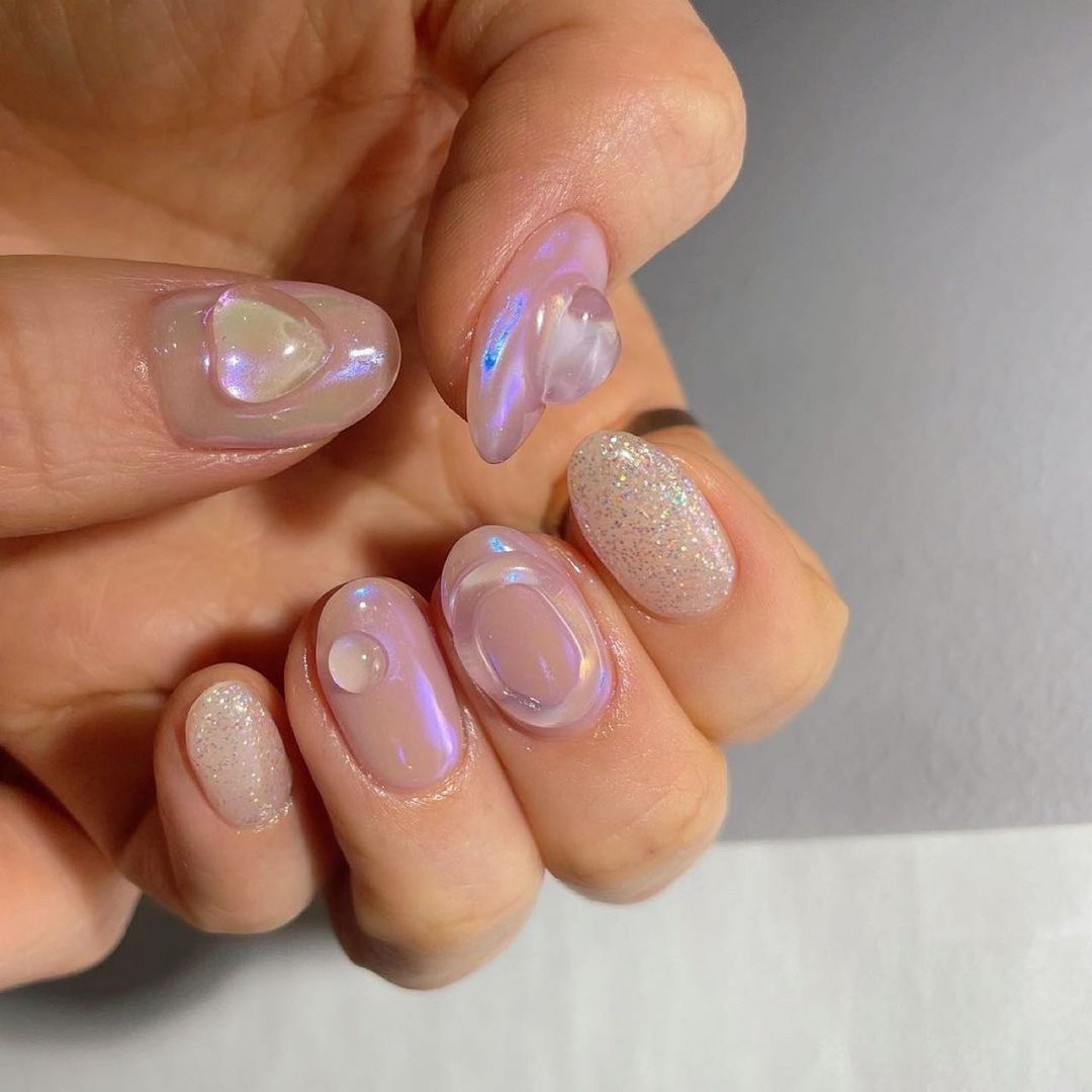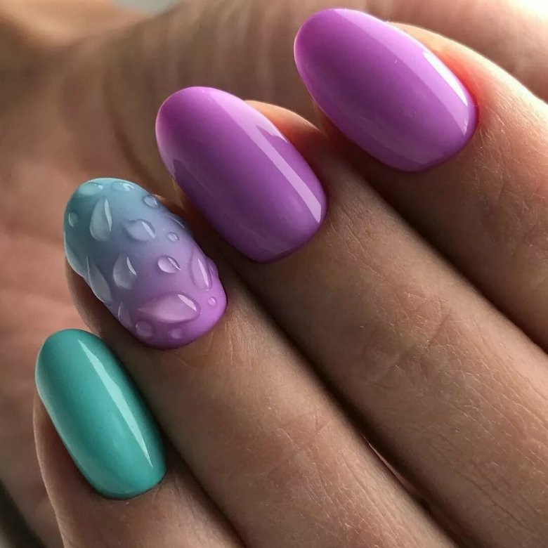 Теперь поговорим о том, какие техники и дизайны могут сочетаться с искусственными капельками воды на ногтях. Выделим самые актуальные и расскажем о том, от каких сочетаний лучше отказаться.