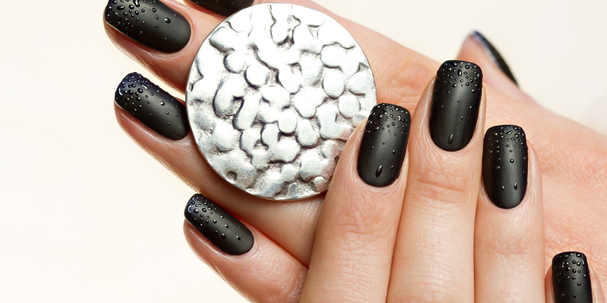Важно: с помощью матового топа создать блестящие капельки воды на ногтях не получится. Вернее, вы сможете сформировать стекающие капли воды, но того эффекта, которого нужно добиться, просто не выйдет.