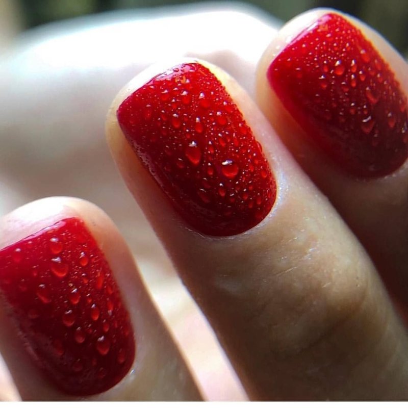 Обратите внимание на актуальные оттенки лака для маникюра с каплями 2026. Это синяя, красная, розовая, коричневая, зеленая палитра. Самыми модными оттенками сезона называют — глубокий синий, черный, темный шоколад, хаки, голубой, молочный, нюдовый. То есть цвета, которые относят к естественной гамме.