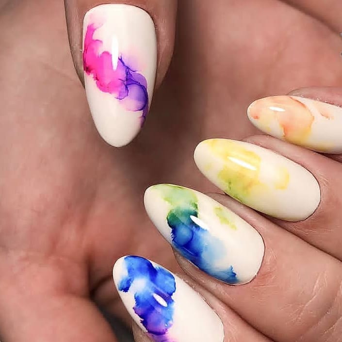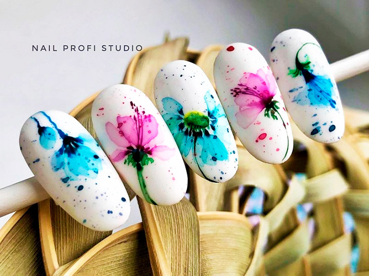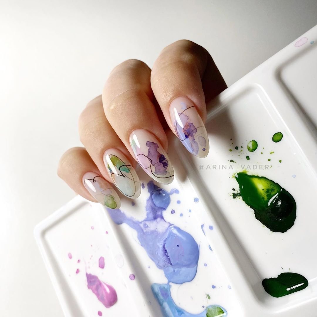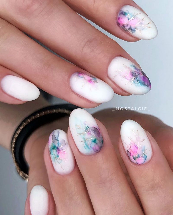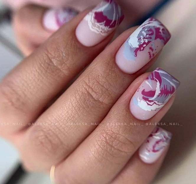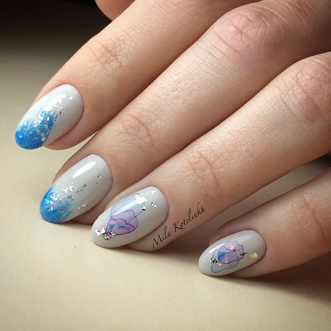 Маникюр с молочной базой и акварельными рисунками — это стильный и нежный вариант дизайна ногтей. Молочная база создает эффект естественного и здорового цвета ногтей, при этом является идеальным фоном для акварельных рисунков. Последние создаются с помощью разбавленной краски и кисточки, которая позволяет создавать нежные переходы и оттенки на ногтях. Результатом такого маникюра будет уникальный и оригинальный дизайн, который привлечет внимание и подчеркнет вашу индивидуальность.