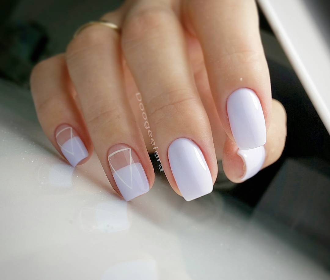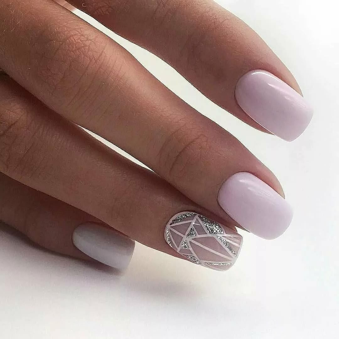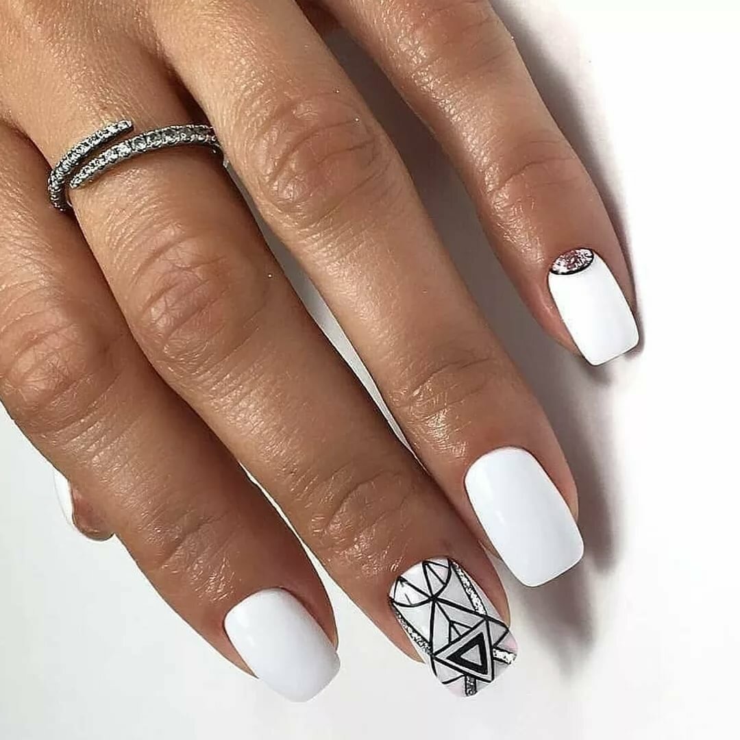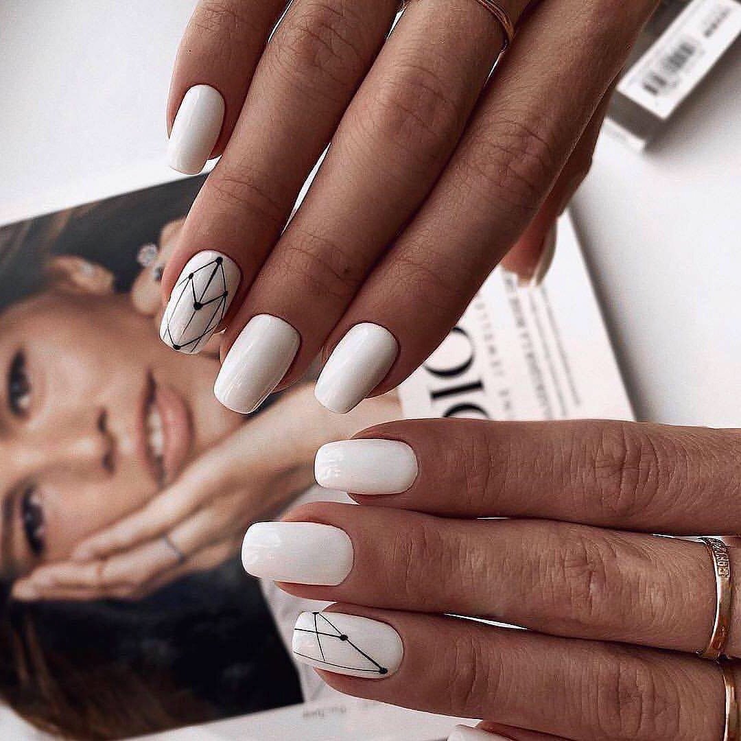Маникюр с молочной базой и геометрическими рисунками – это стильный и современный вариант дизайна ногтей. Молочная база подчеркивает нежность и природную красоту ногтей, а геометрические рисунки добавляют им оригинальность и выразительность.