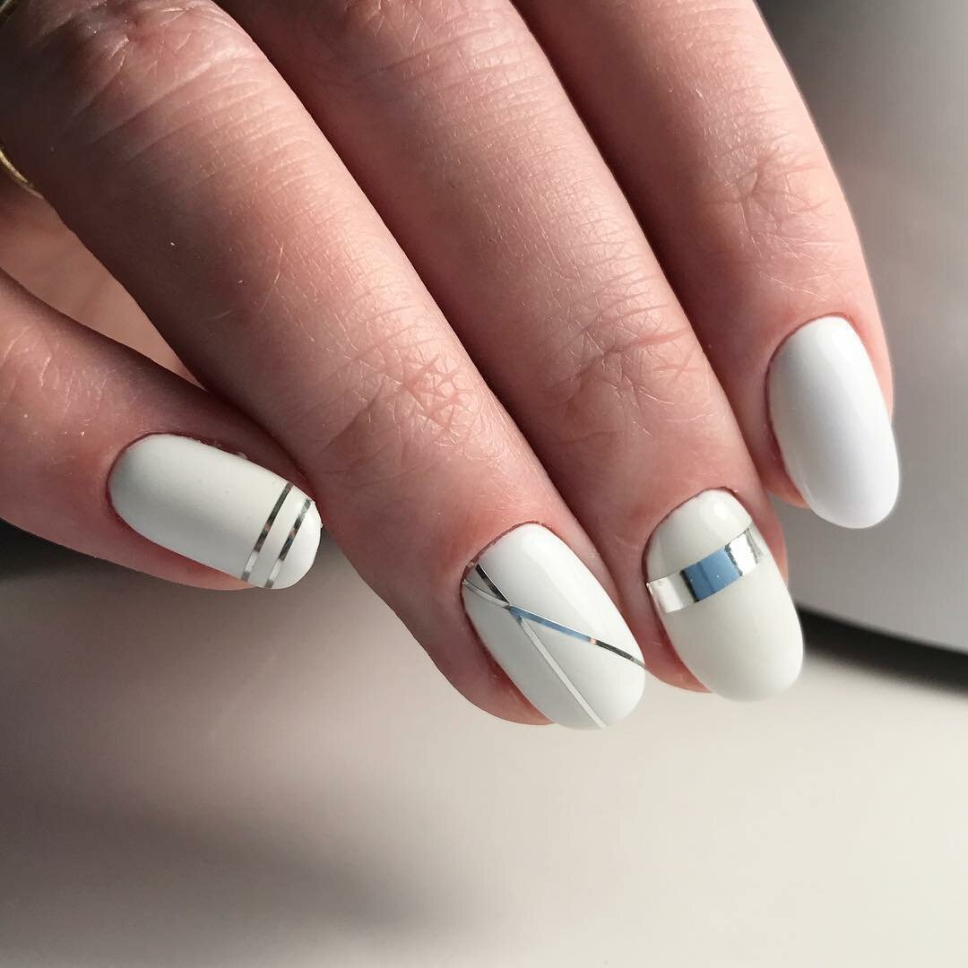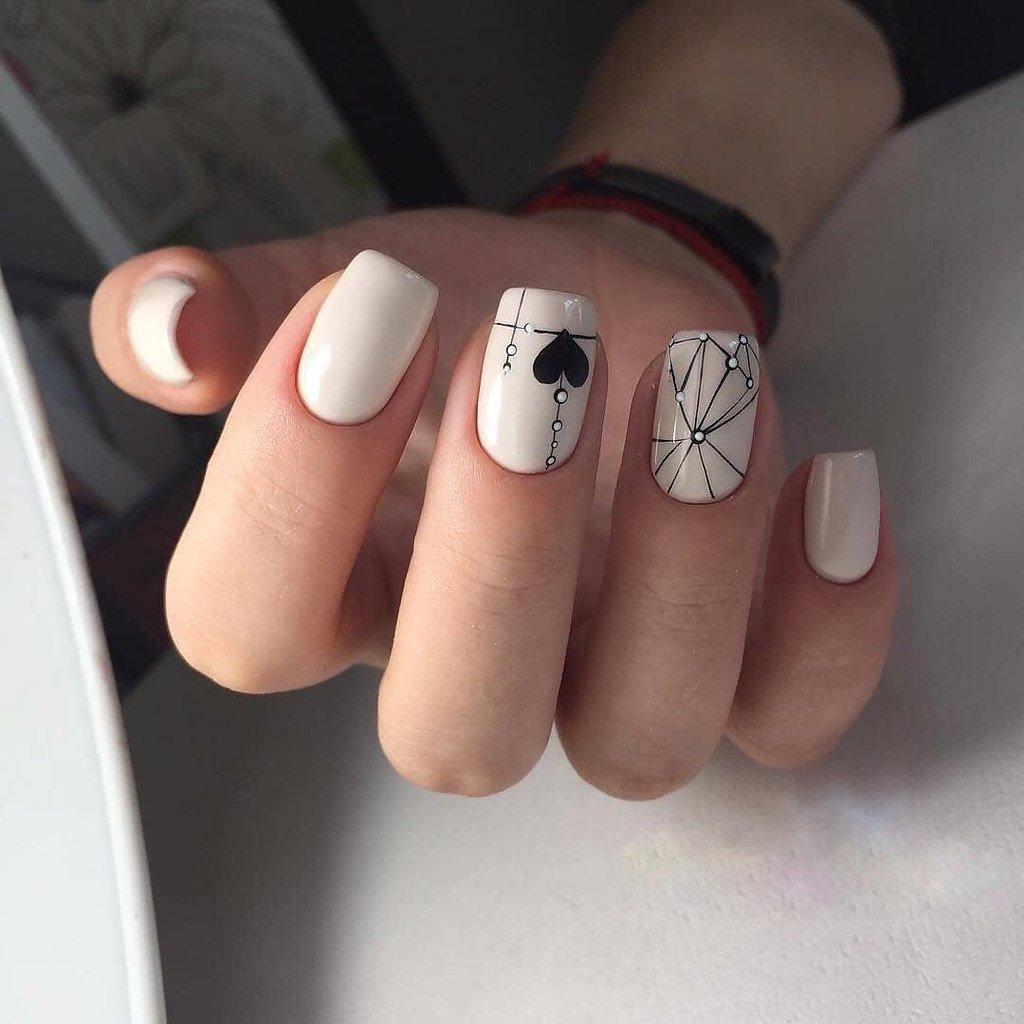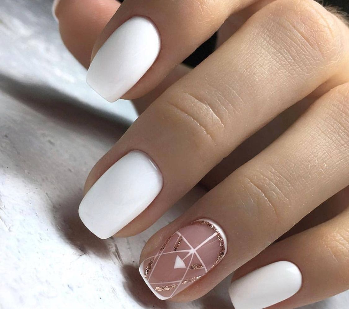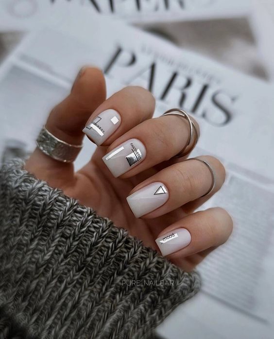 Маникюр с молочной базой и геометрическими рисунками – это стильный и современный вариант дизайна ногтей. Молочная база подчеркивает нежность и природную красоту ногтей, а геометрические рисунки добавляют им оригинальность и выразительность.
