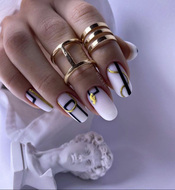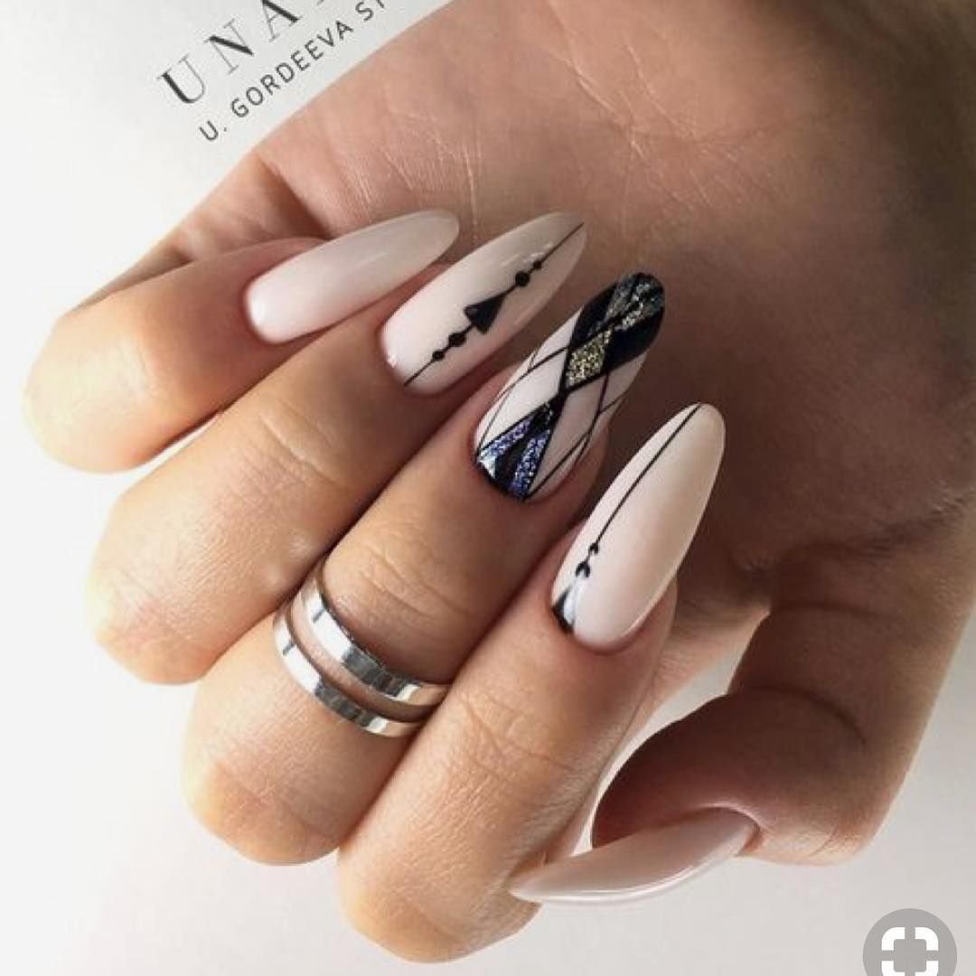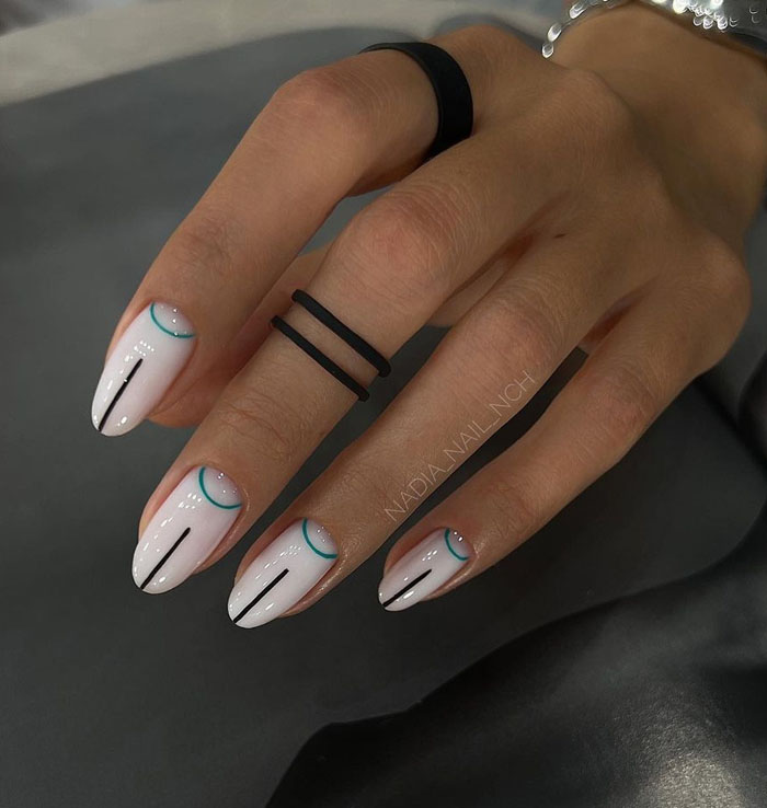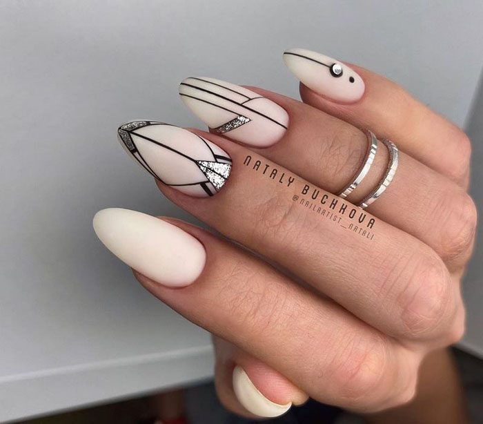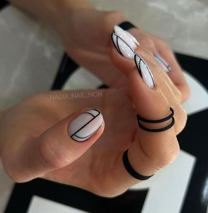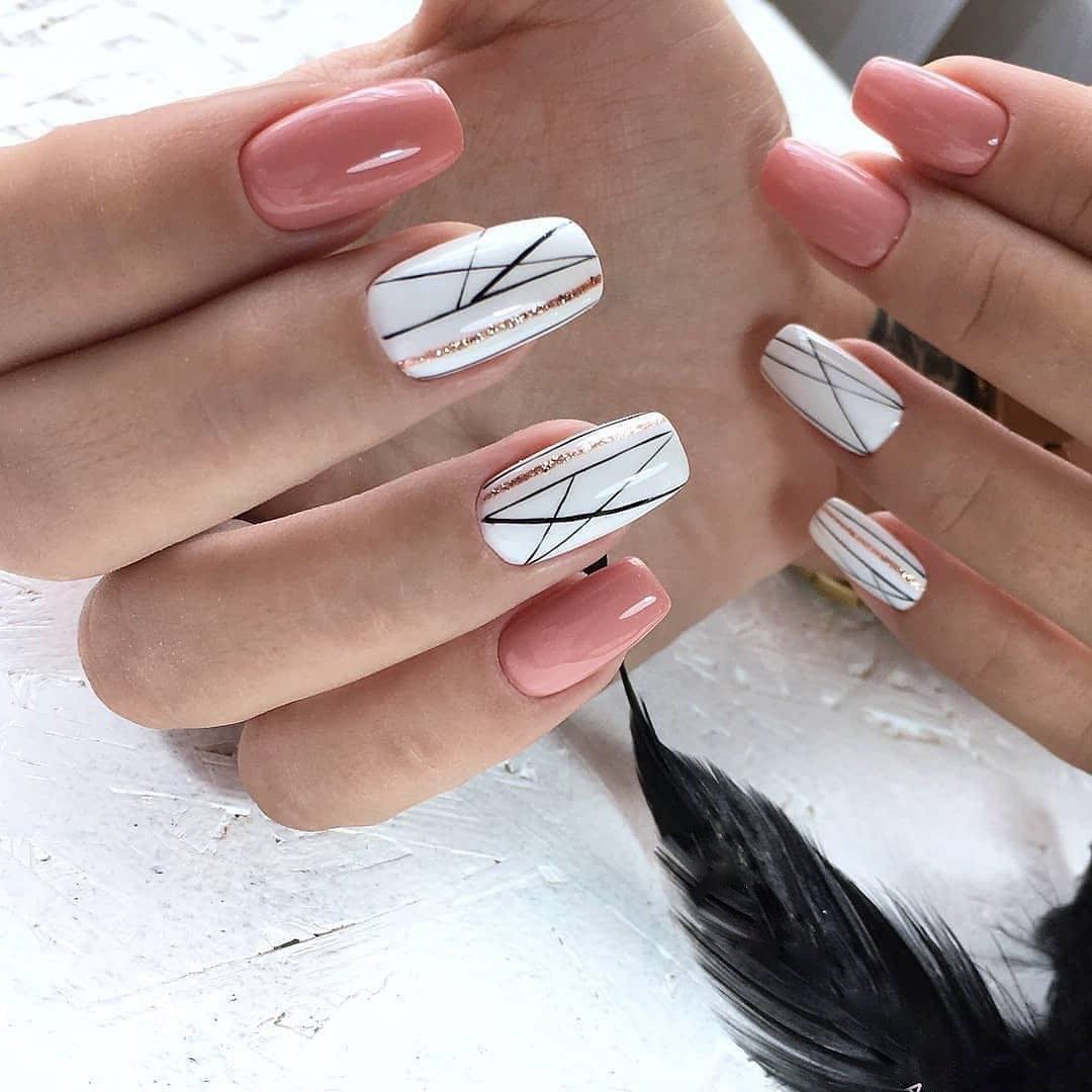 Маникюр с молочной базой и геометрическими рисунками – это стильный и современный вариант дизайна ногтей. Молочная база подчеркивает нежность и природную красоту ногтей, а геометрические рисунки добавляют им оригинальность и выразительность.