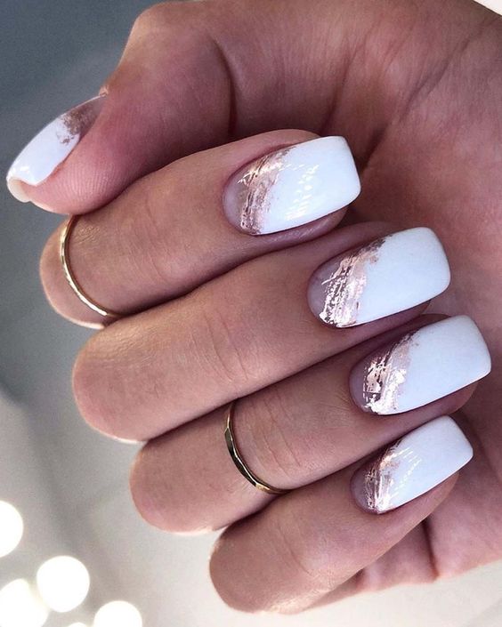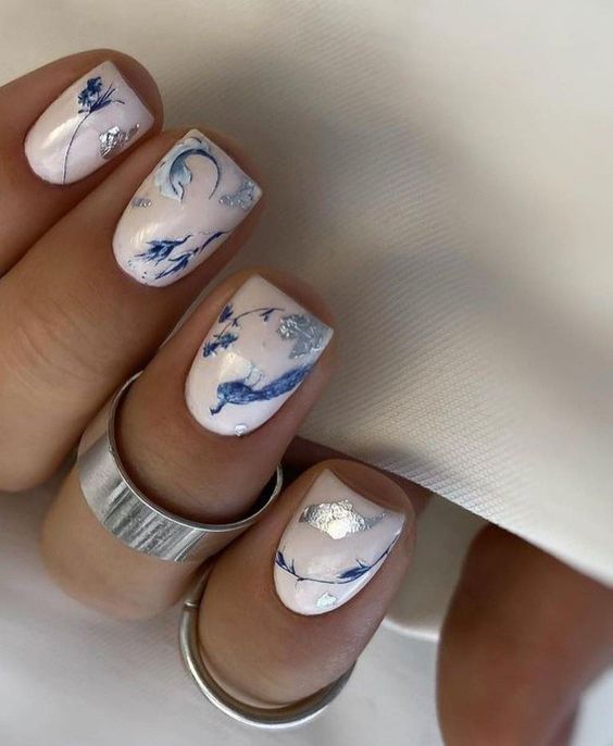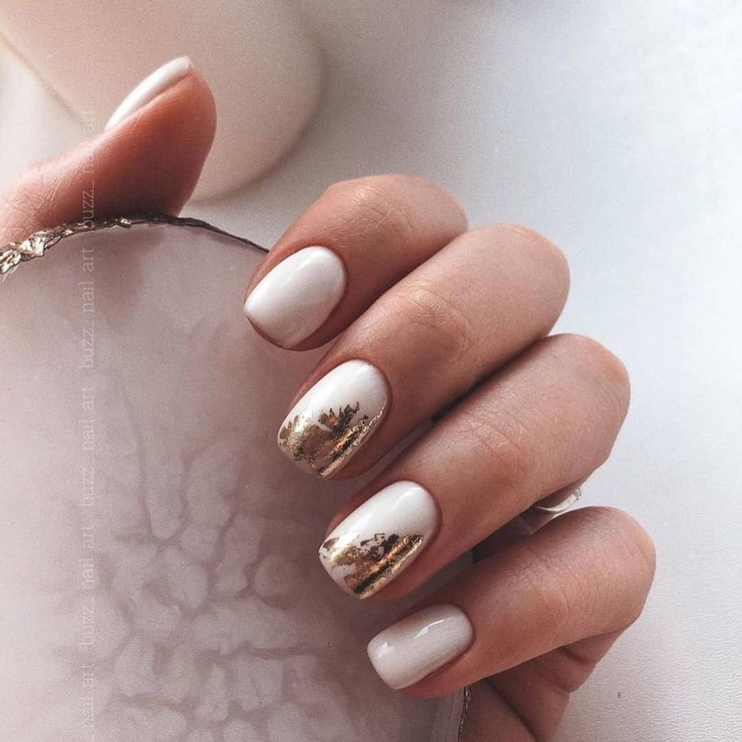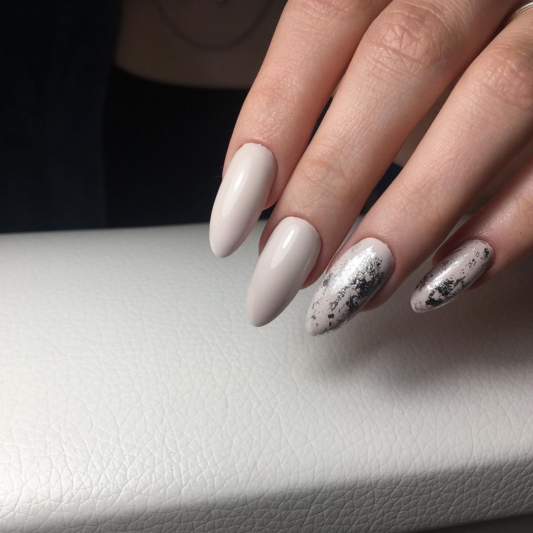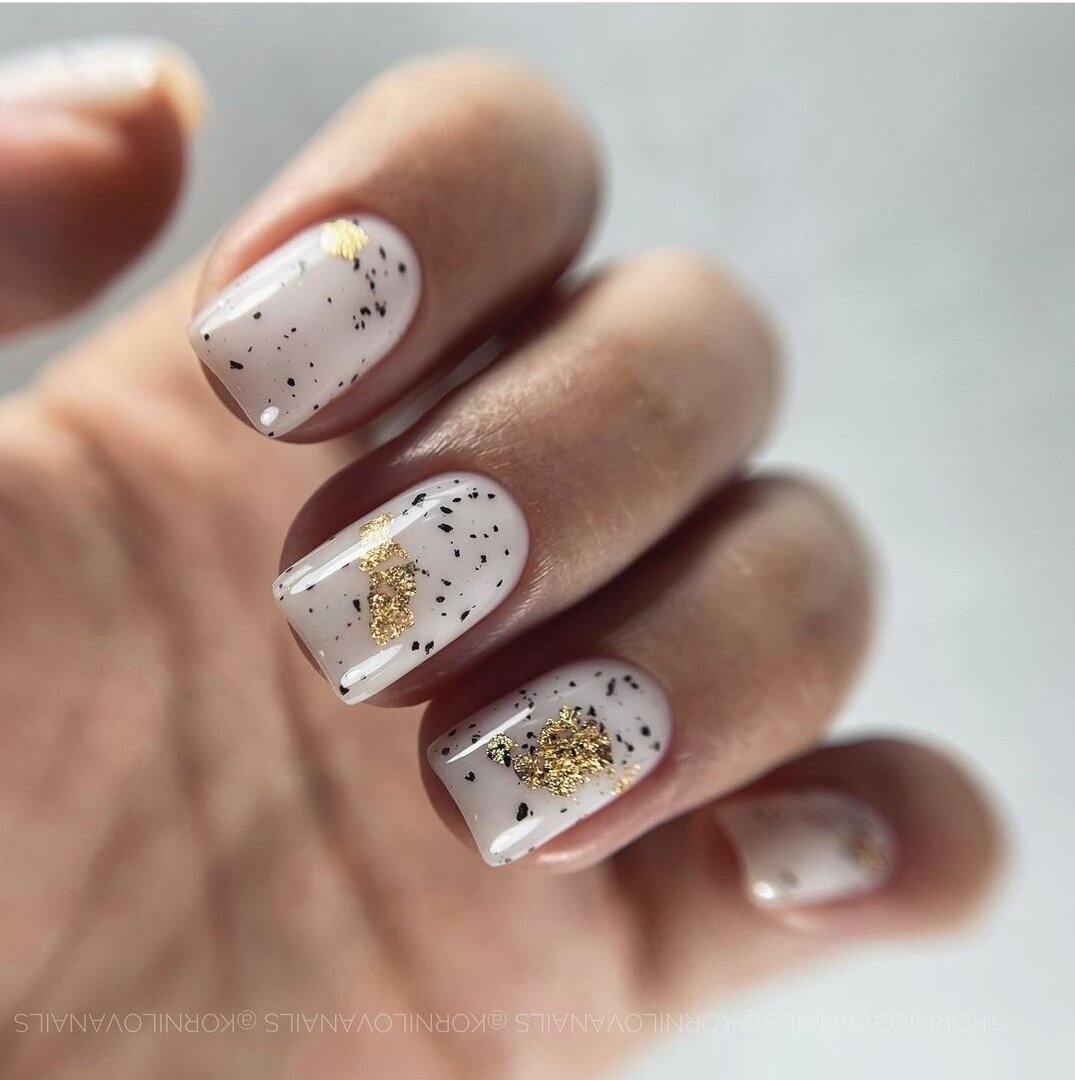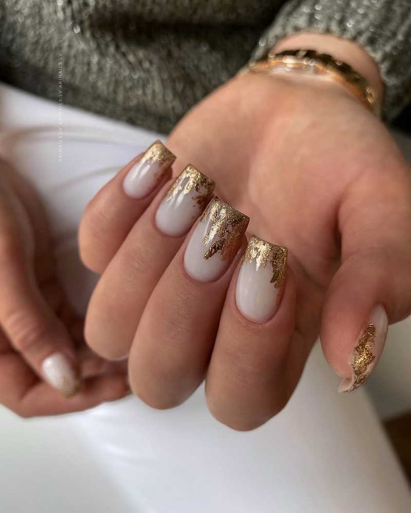 Молочная база — это нежный и естественный оттенок, который можно нанести на ногти в качестве основы. Он создает идеальное полотно для дальнейшей декорации и подходит для любого стиля. Если вы хотите добавить немного блеска и оригинальности, то фольга — это отличный выбор. Ее можно применить в виде акцентного элемента на один или несколько ногтей, либо создать интересный узор, абстрактную картину. Фольга придает маникюру эффектный блеск и яркость, делая его более выразительным и стильным.