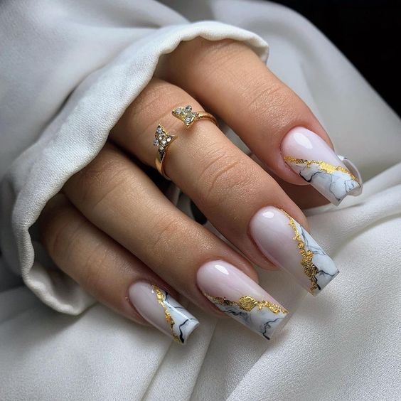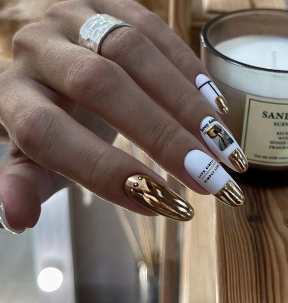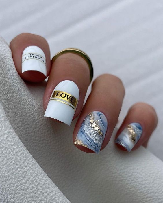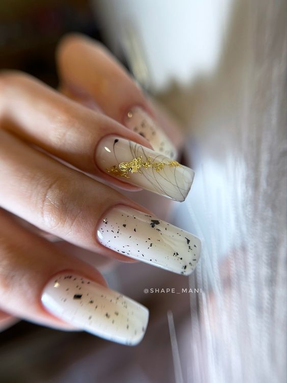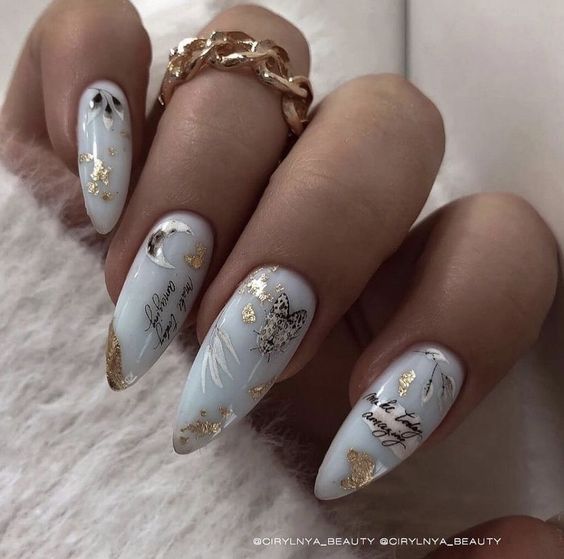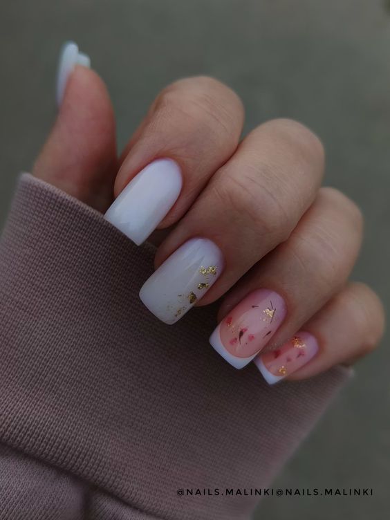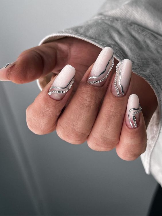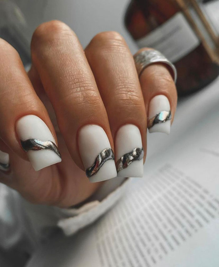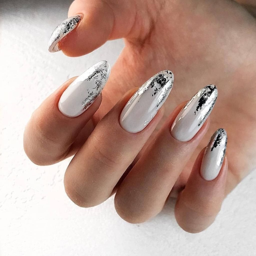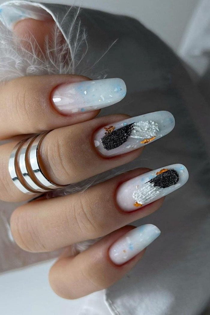 Молочная база — это нежный и естественный оттенок, который можно нанести на ногти в качестве основы. Он создает идеальное полотно для дальнейшей декорации и подходит для любого стиля. Если вы хотите добавить немного блеска и оригинальности, то фольга — это отличный выбор. Ее можно применить в виде акцентного элемента на один или несколько ногтей, либо создать интересный узор, абстрактную картину. Фольга придает маникюру эффектный блеск и яркость, делая его более выразительным и стильным.
