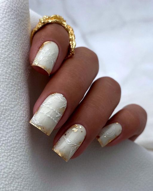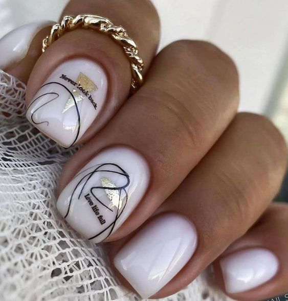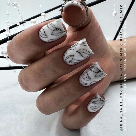Молочная база и рисунки в сочетании создают нежный и стильный образ, который идеально подходит для повседневного или особого случая. Такой маникюр будет прекрасно смотреться на разной длине ногтей и дополнит любой образ.