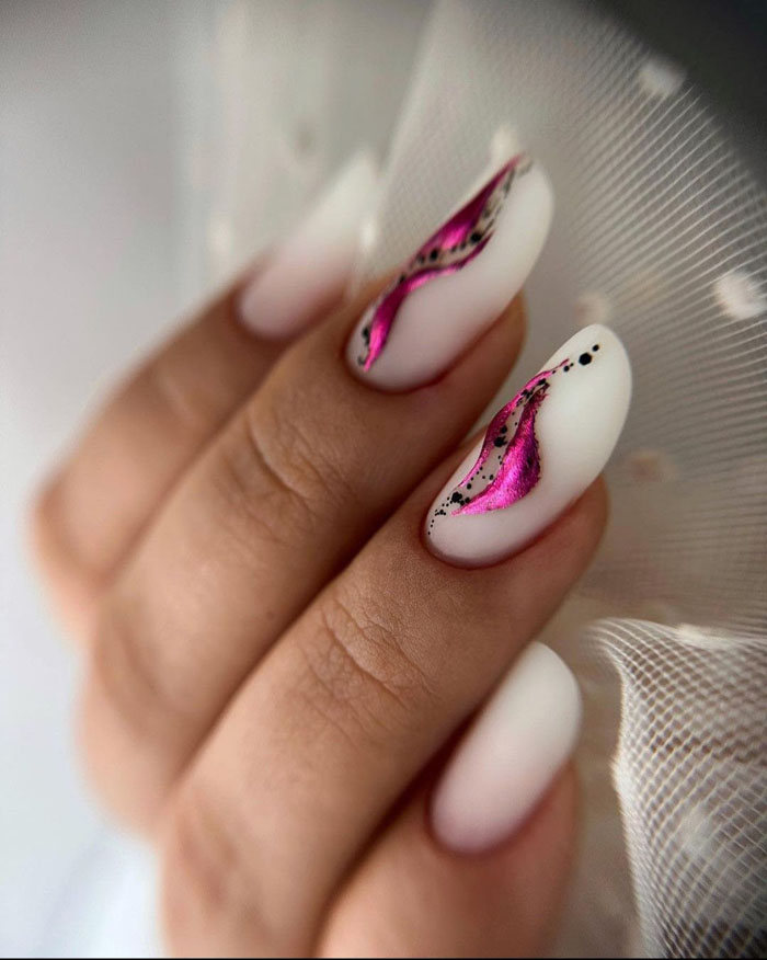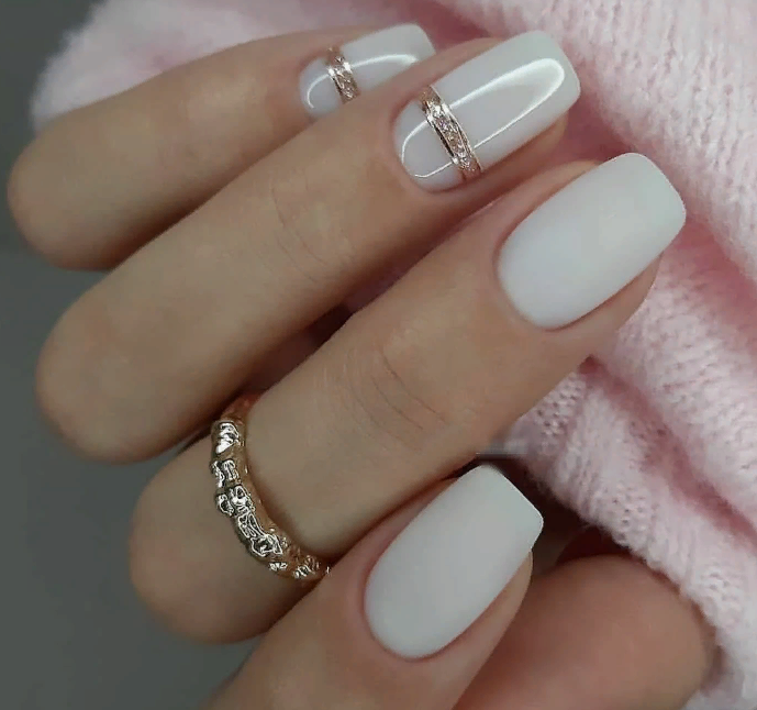 подчеркивание дизайна: молочная база часто используется как хорошая основа для других дизайнерских элементов, таких как узоры, глиттер, рисунки и френч. Она помогает им выделяться и придает им яркость;