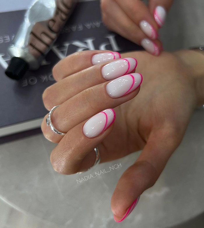 Это стильный и современный вид ногтевого дизайна. Основой для этого маникюра служит нежный оттенок молочного цвета, который создает эффект натуральности и ухоженности. Негативное пространство – это акцентный элемент, который оставляется свободным от лака или украшений. Это может быть либо часть круга или полукруга у основания ногтя, или же участок по бокам ногтя. Негативное пространство может быть задействовано для создания различных узоров и графических элементов, таких как геометрические фигуры или абстрактные линии. Этот вид маникюра обычно выглядит свежим и стильным, и может быть подходящим как для повседневного, так и для особого случая.