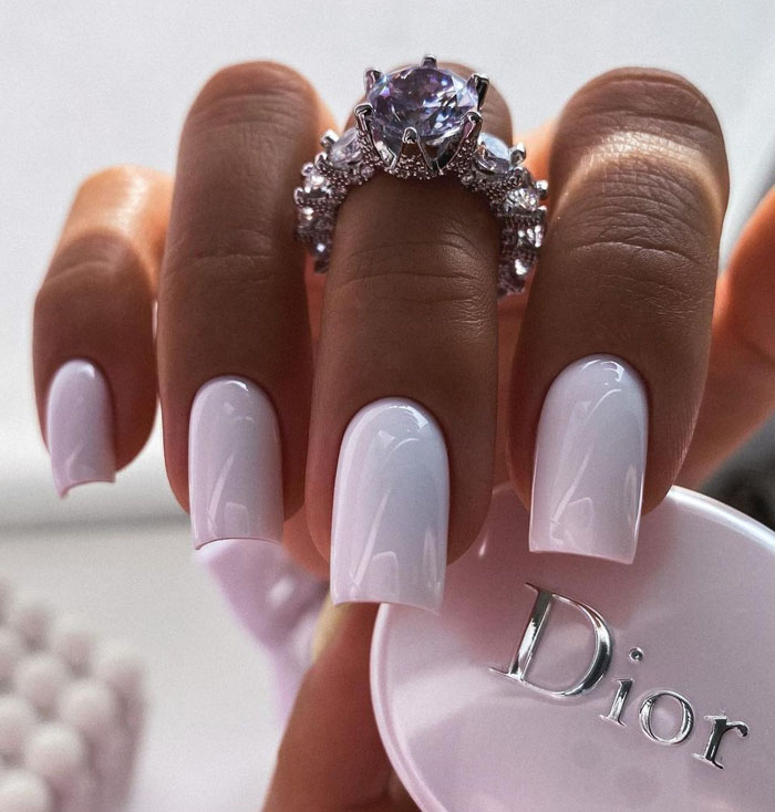 - молочная полупрозрачная база: обычно обладает некоторой степенью прозрачности, что позволяет естественному цвету ногтей просвечивать сквозь нее;