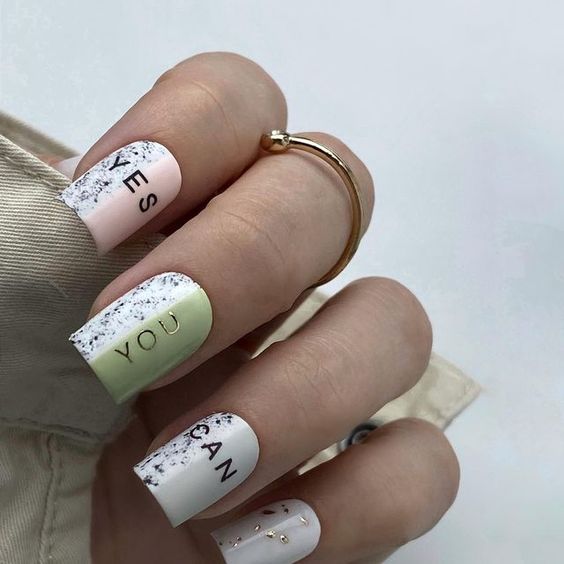- цветные блестки: вмешайте разноцветные блестки в лак для ногтей, чтобы создать яркий и веселый маникюр;
