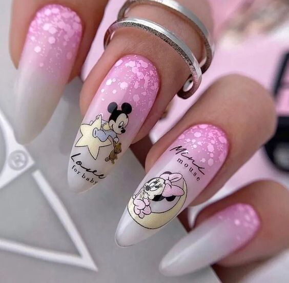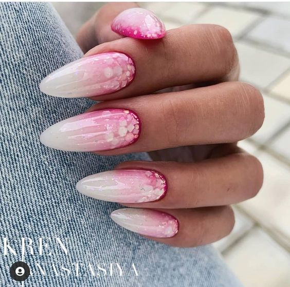 - градиент блесток: создайте эффект градиента, нанося блестки от одного цвета к другому на каждом ногте. Это выглядит креативно и празднично;