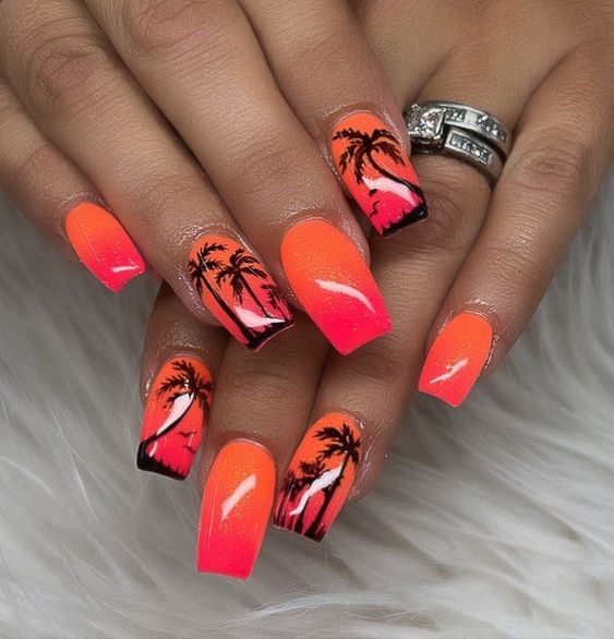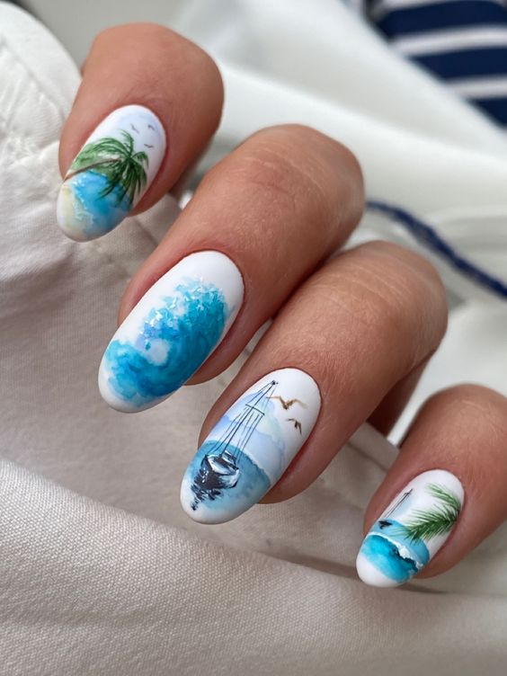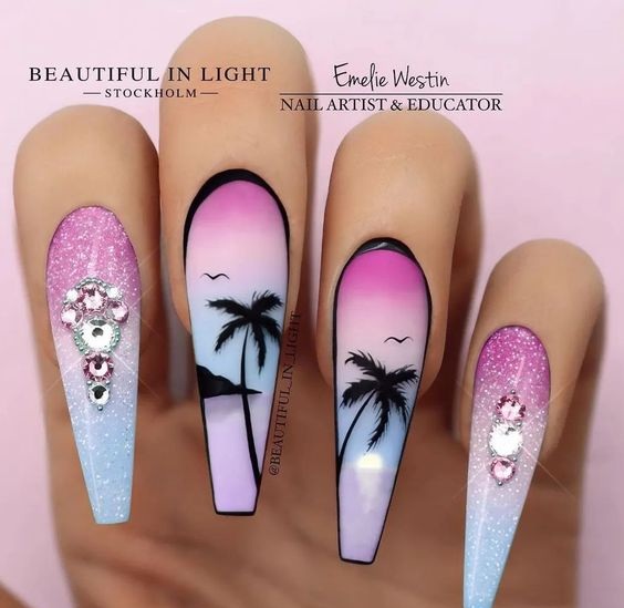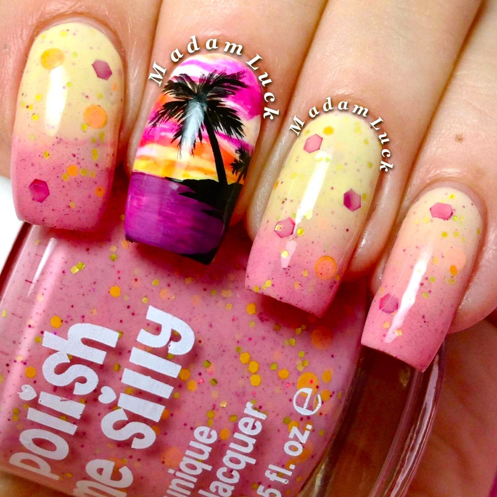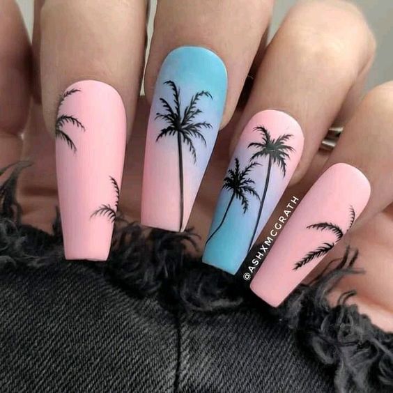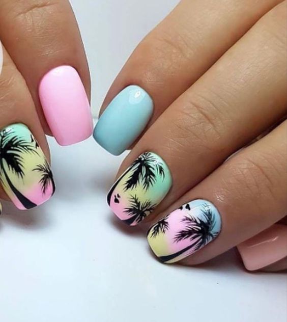 Разве можно представить себе отдых на морском побережье без пальм и яркого солнца? Конечно, нет. Если только вы не решили отдать предпочтение экстремальному отдыху и отправились любоваться на холодные моря севера. Красивые пальмы, нежный песок и морская волна — стильный и актуальный дизайн ногтей готов.