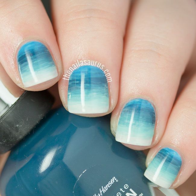 Сделать маникюр с морем довольно просто. Ведь водная стихия не имеет никакой определенной формы — все дело в вашей фантазии. Предлагаем попробовать простой вариант морского маникюра, который вы сможете повторить дома самостоятельно: