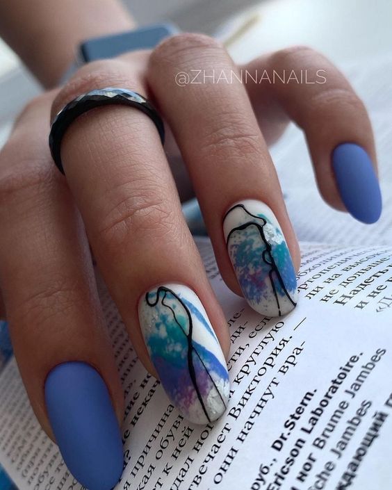 Может ли быть маникюр с морем абстрактным? Конечно. Это будет имитация волн. Выбирайте яркие краски, рисуйте волны на ногтях и стильный маникюр готов.