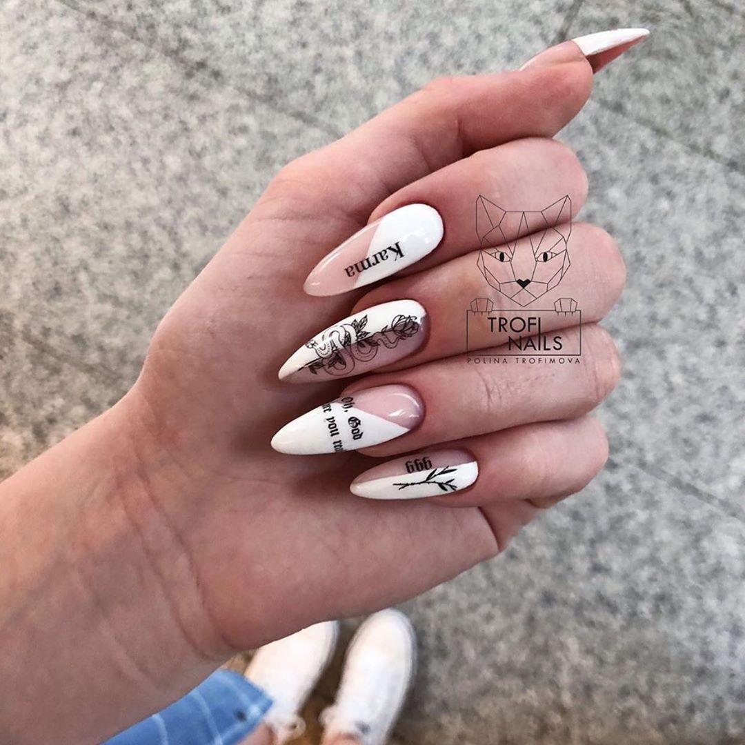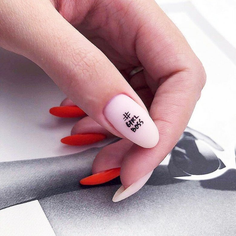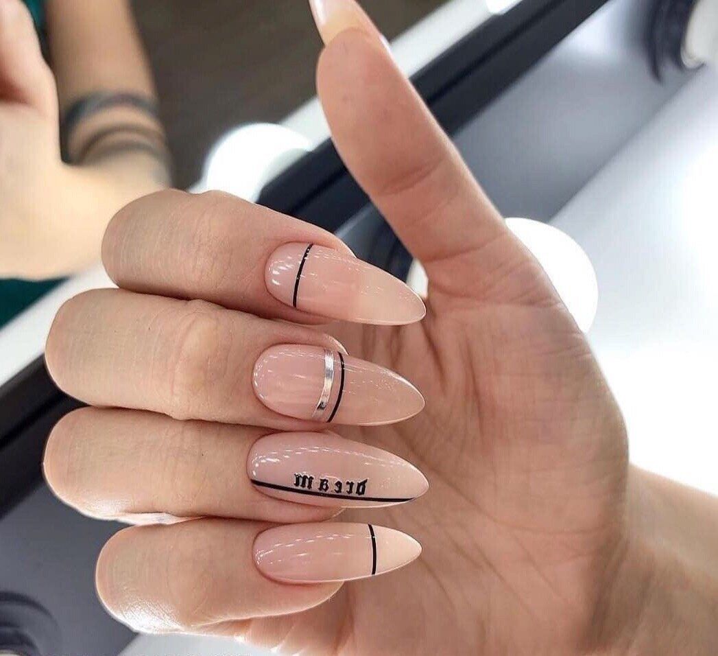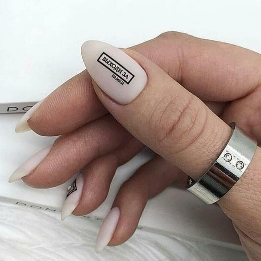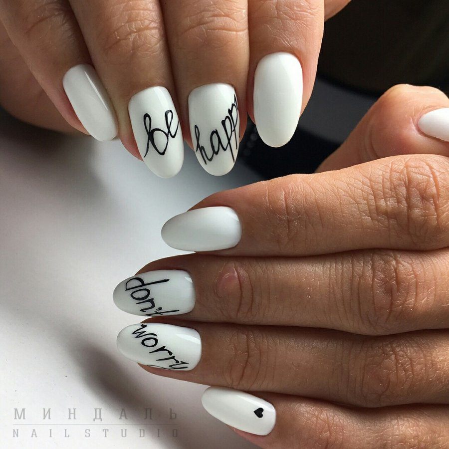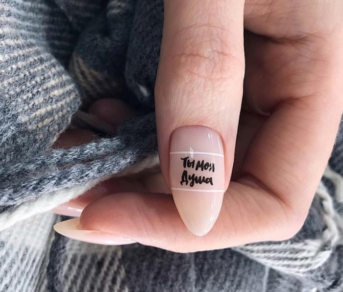 Маникюр на миндальные ногти с надписями