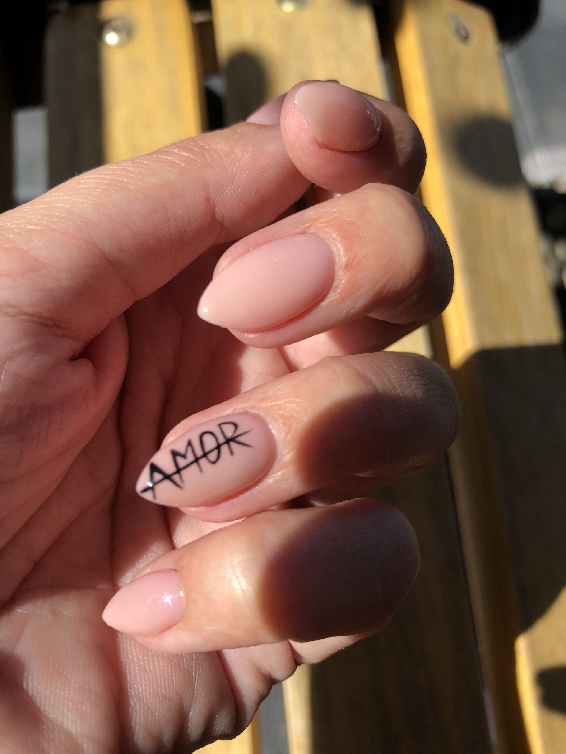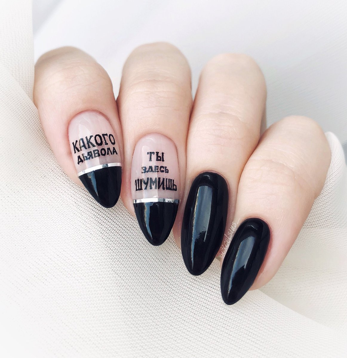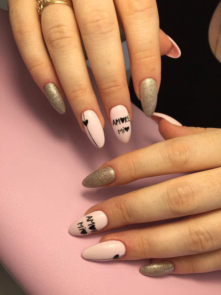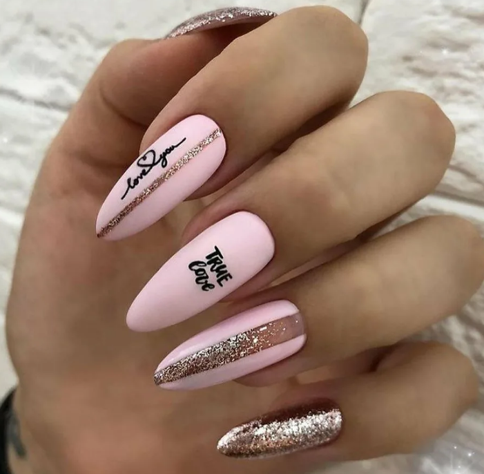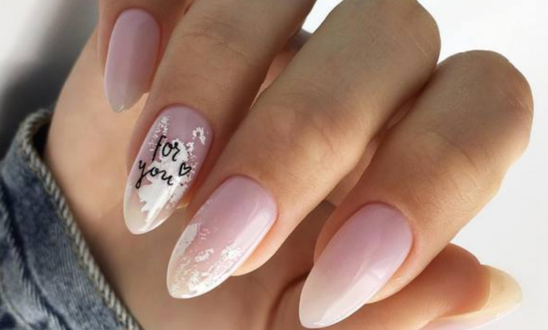 Маникюр на миндальные ногти с надписями