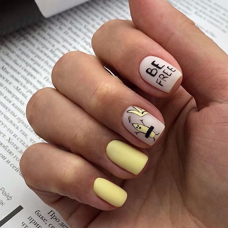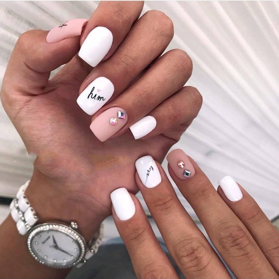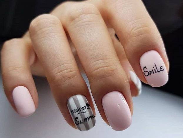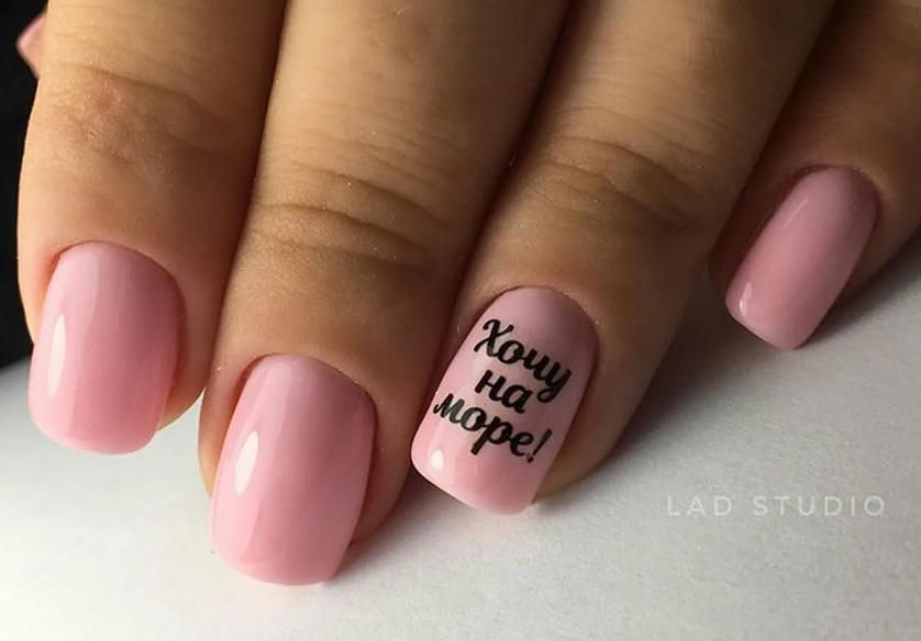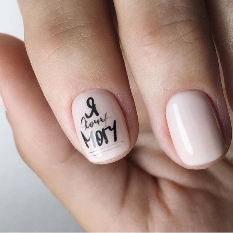 Маникюр на короткие ногти с надписями