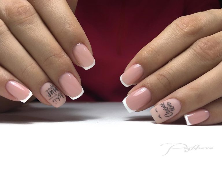 - Французский маникюр с надписями