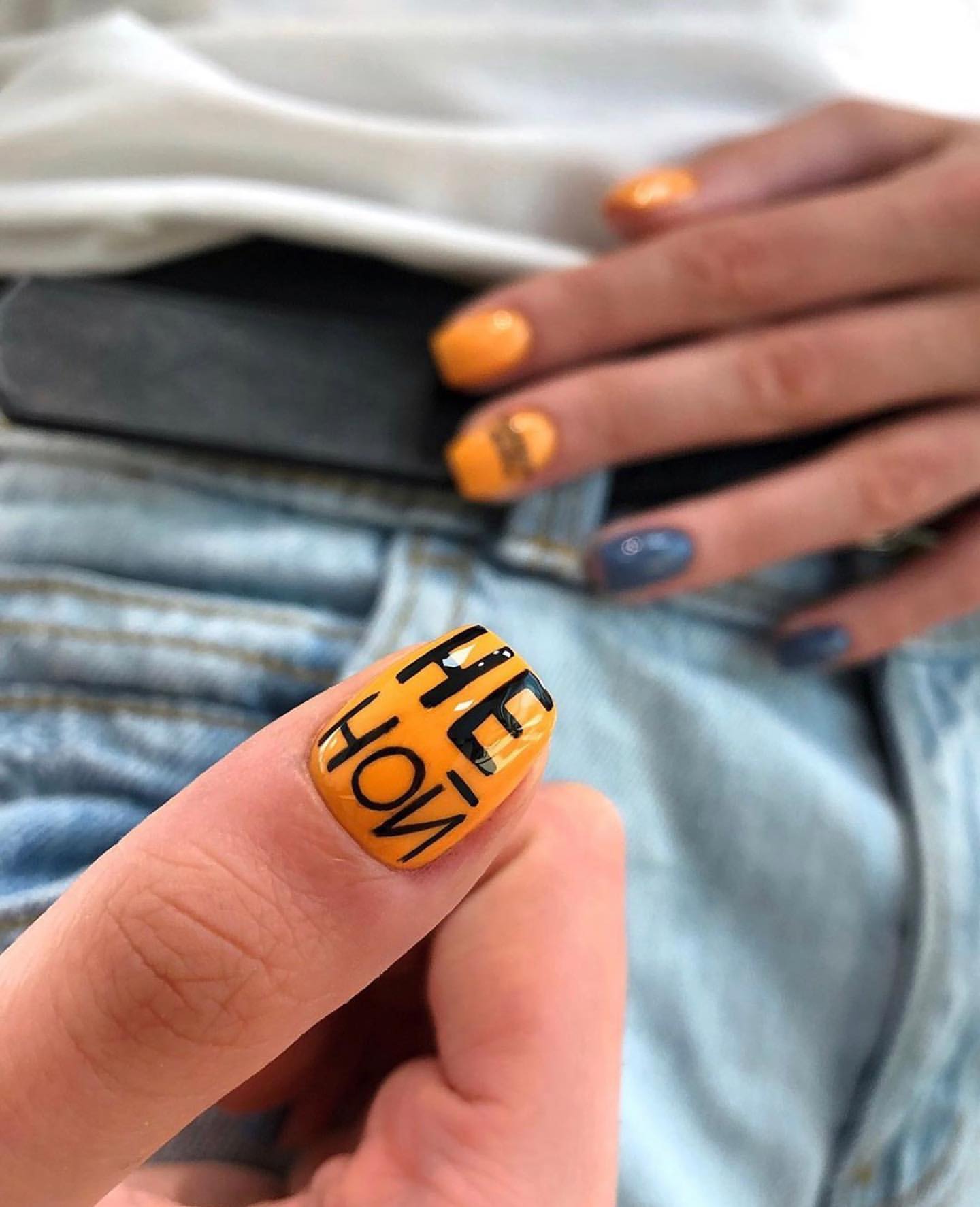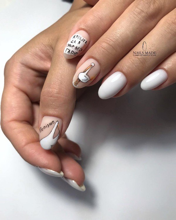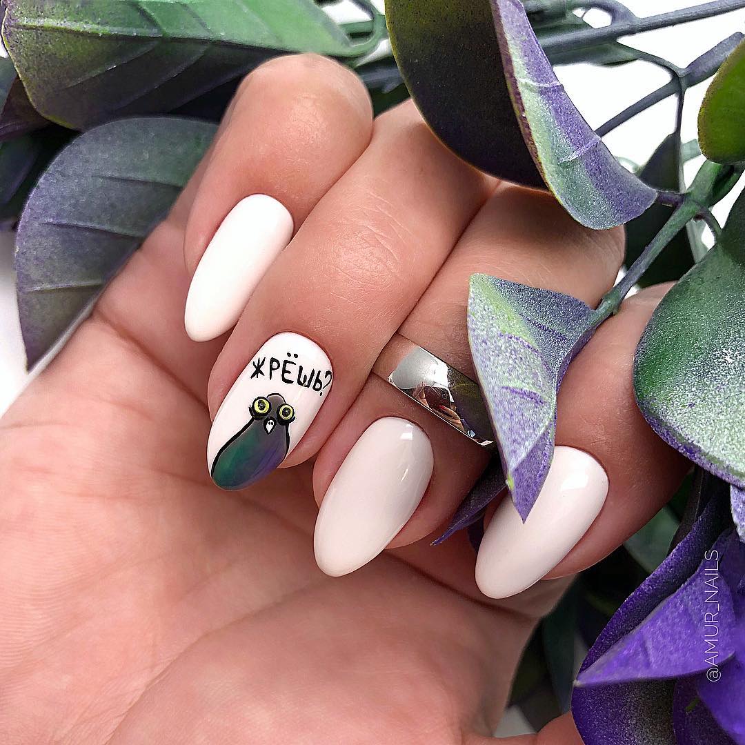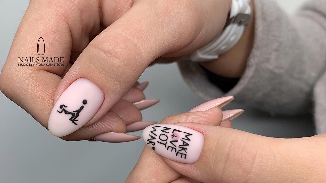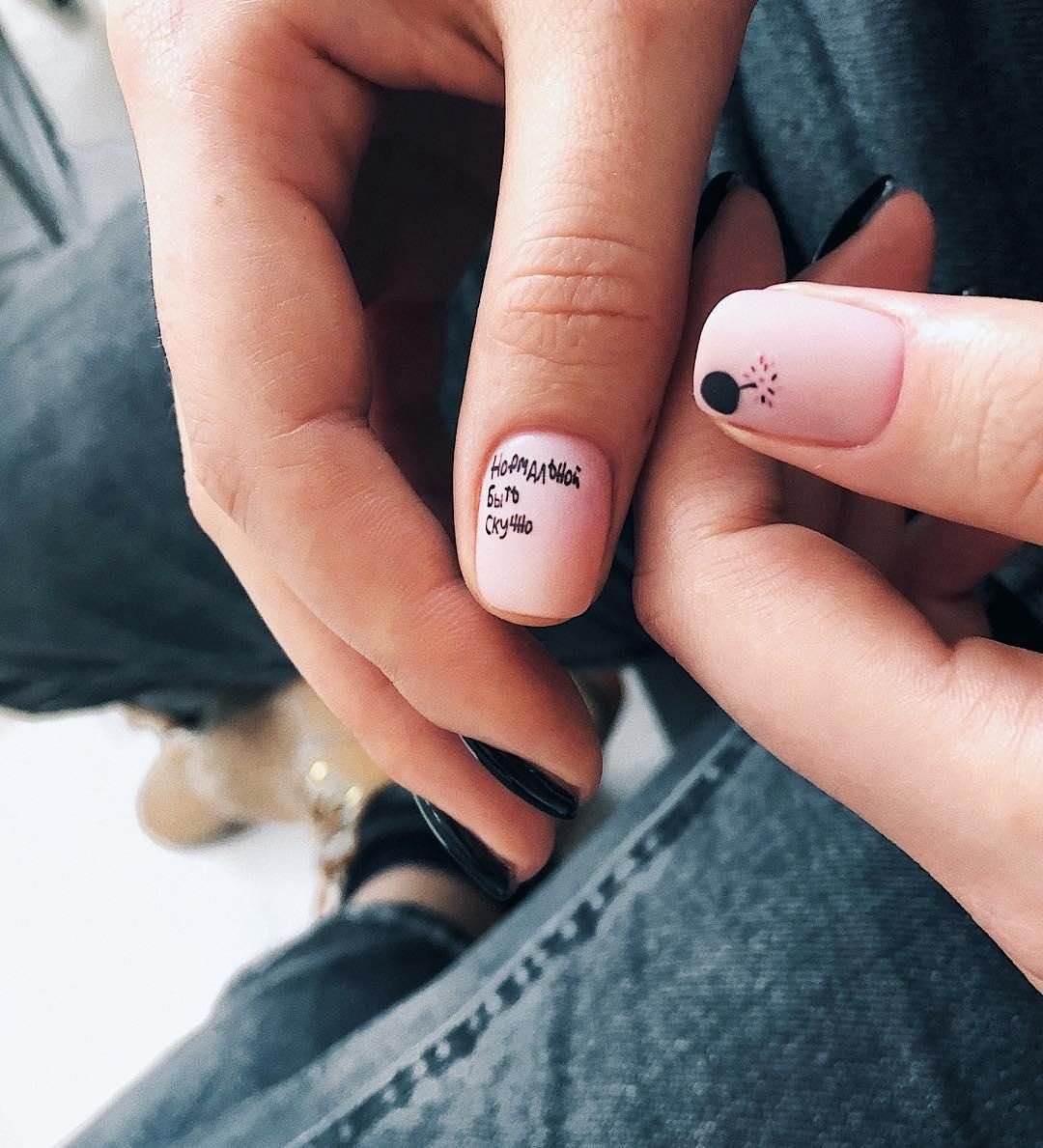Прикольные надписи давно стали одной из составляющих подобного нейл арта. Они могут быть самыми разными — от тех, что гуляют по сети и собирают тысячи лайков до тех, что вы придумаете самостоятельно.