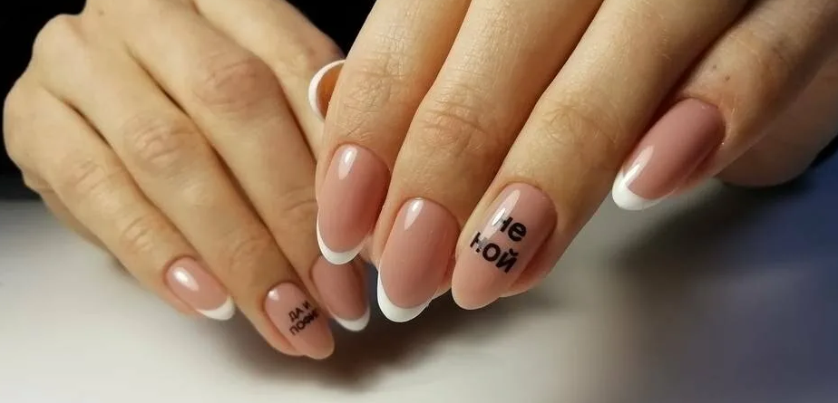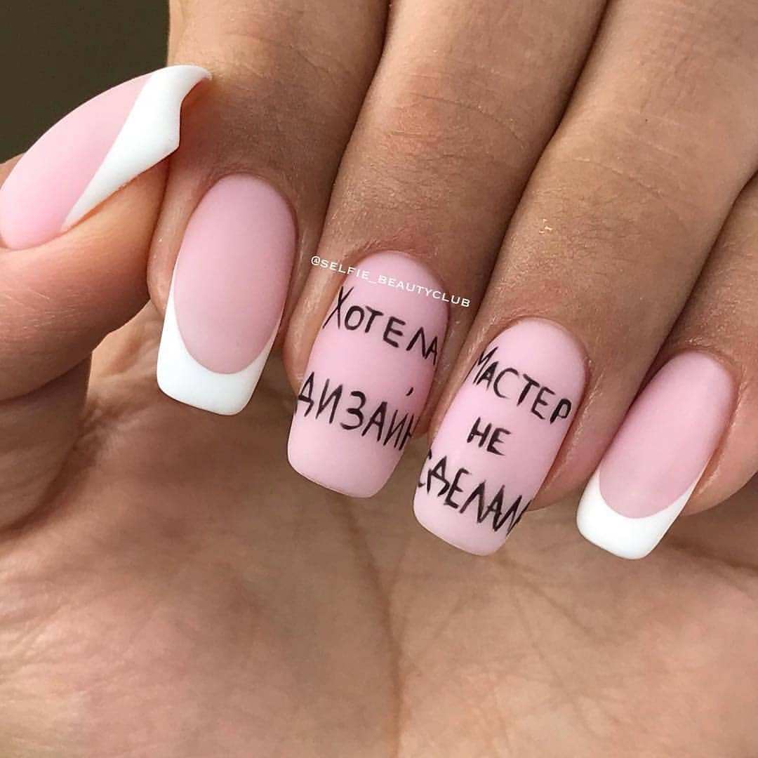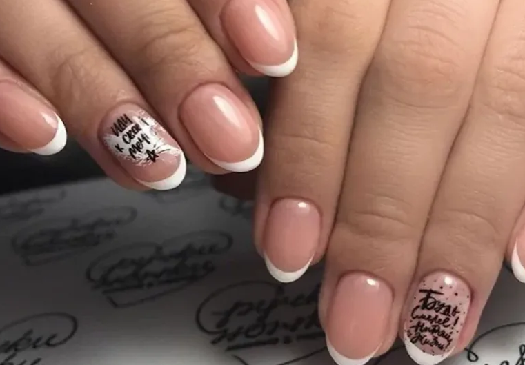 Французский маникюр с надписями
