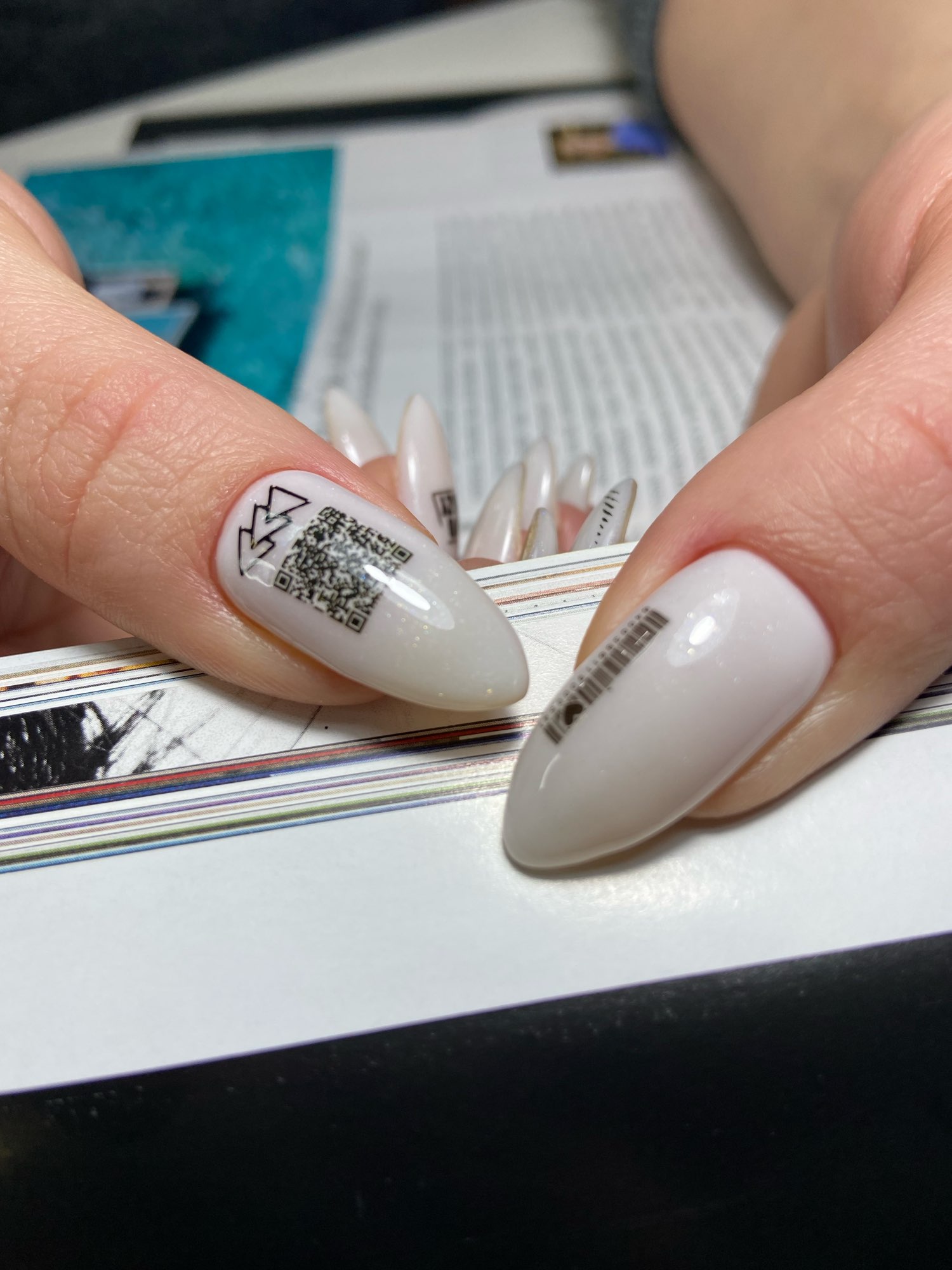 Совет: еще один интересный вариант нейл арта — нанесение штрих кода на пластину. Или qr-кода. При этом сформировать код вы можете в одном из сервисов в сети. А потом нанести его на ноготок. Представьте, как удивится тот, кто сможет прочитать информацию, зашифрованную в куар-коде с помощью смартфона. Это может быть как номер телефона, так и признание в любви.