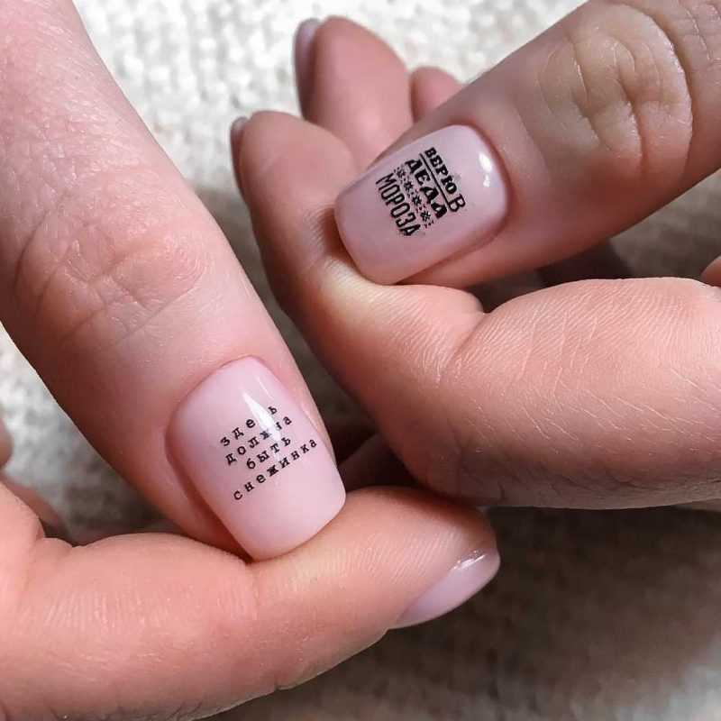 - Модный маникюр с надписями 2026: фото