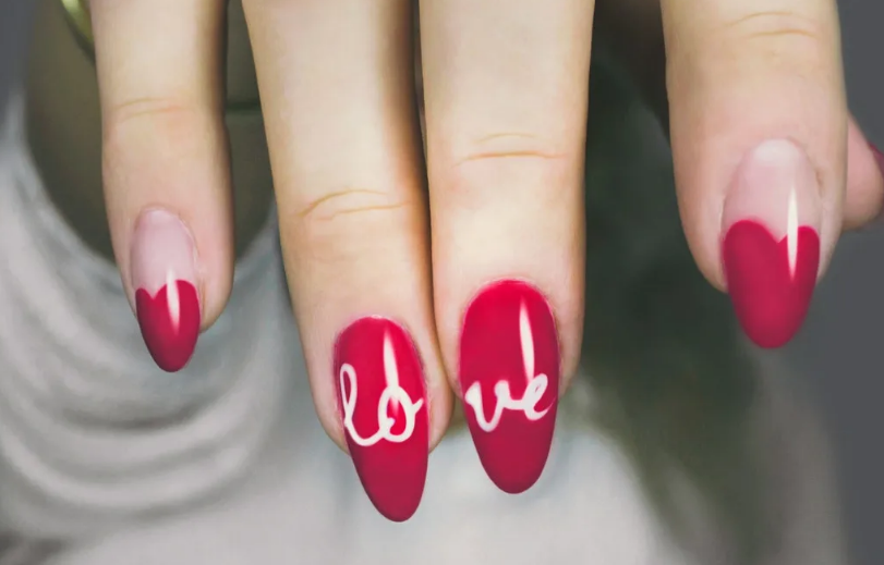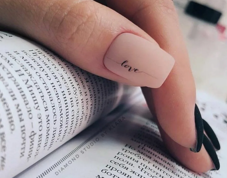 - Маникюр с надписью «Любовь»