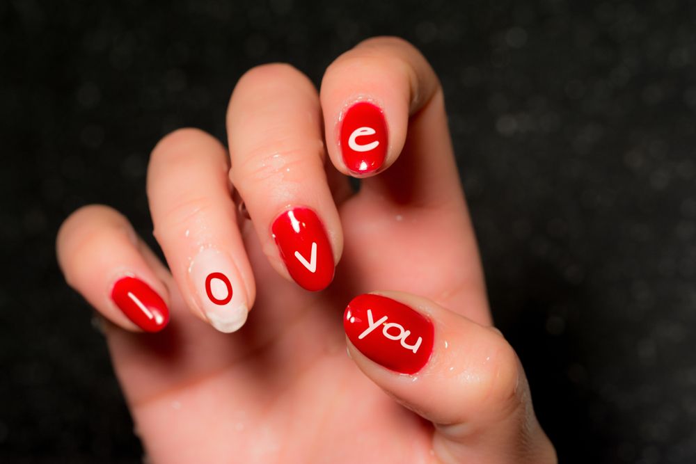 Маникюр с надписью «Любовь»