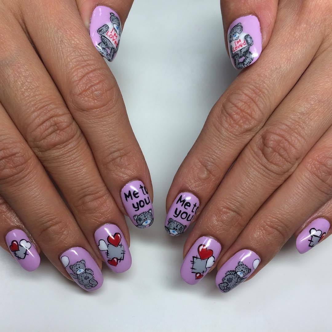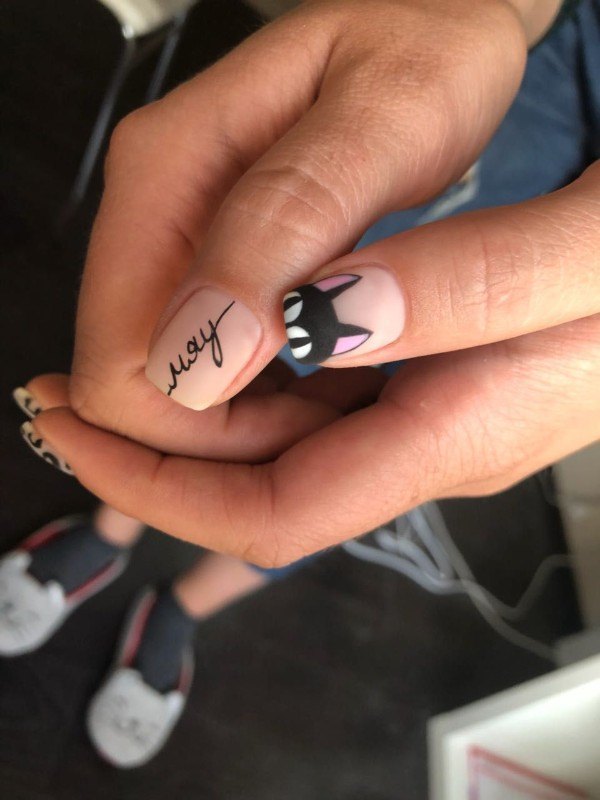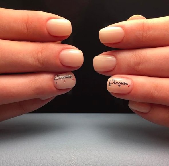 - Маникюр на короткие ногти с надписями