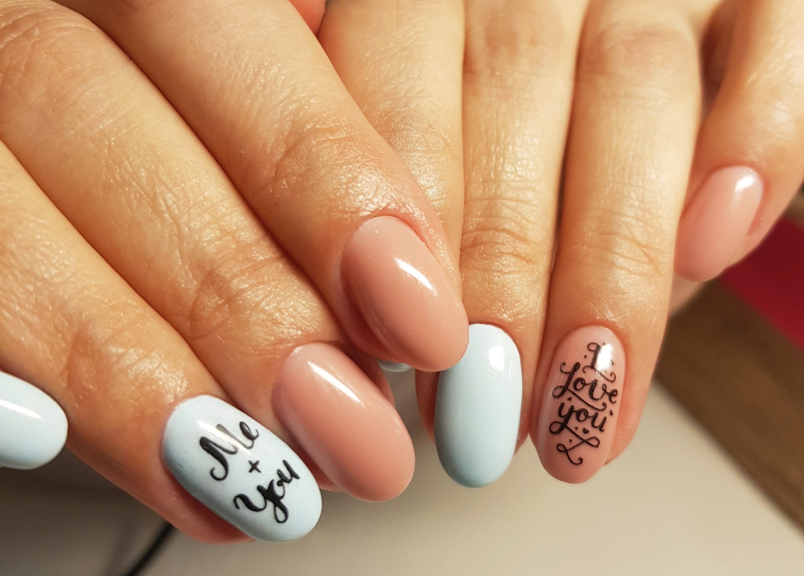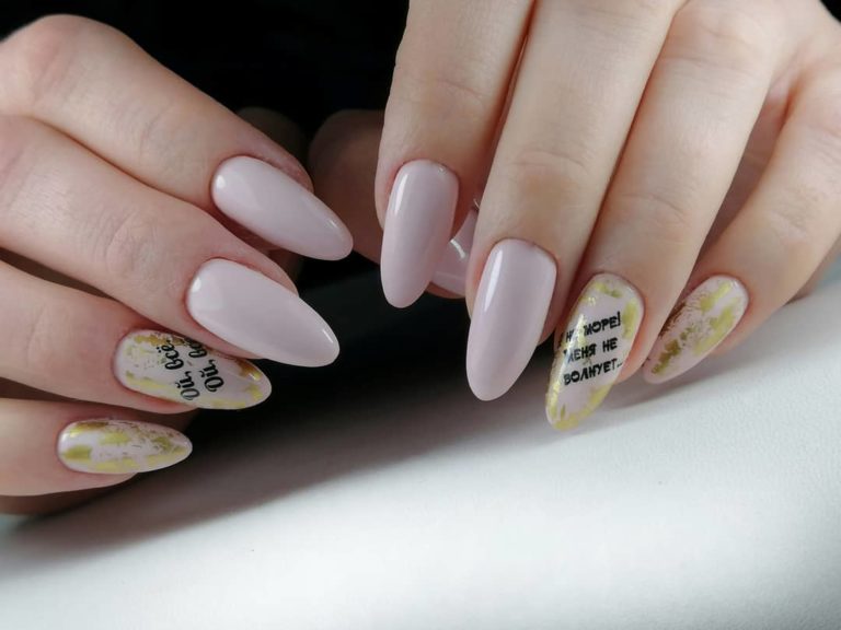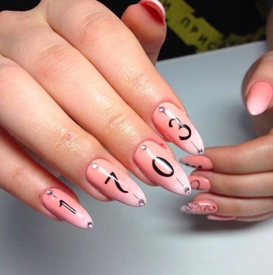 - Маникюр на миндальные ногти с надписями