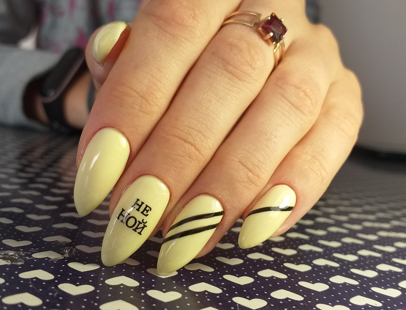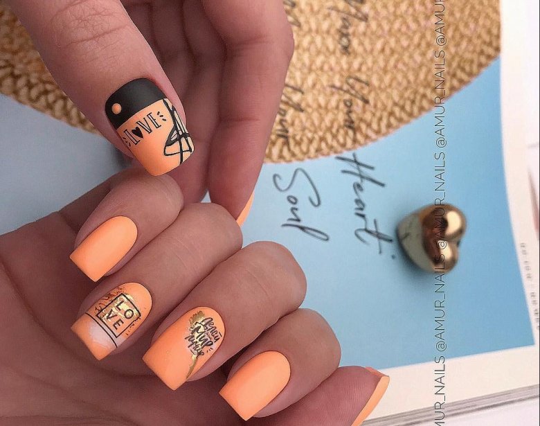 Мы привыкли видеть это слово в основном на английском языке. Но в этом сезоне предлагаем использовать именно русский. Так вы сможете выразить свои чувства к партнеру. А если любовь прошла, слово можно просто зачеркнуть и маникюр останется не менее актуальным.
