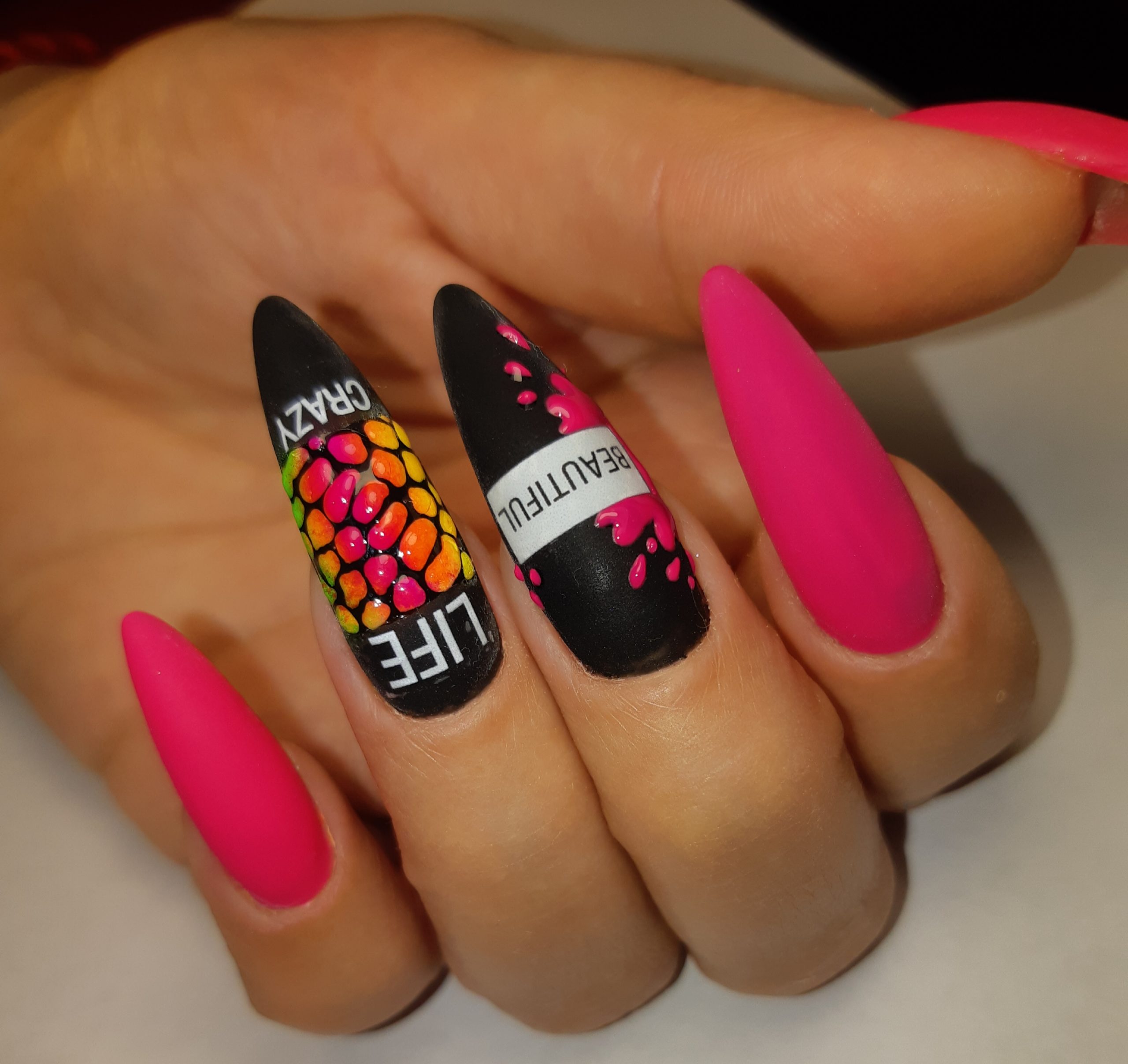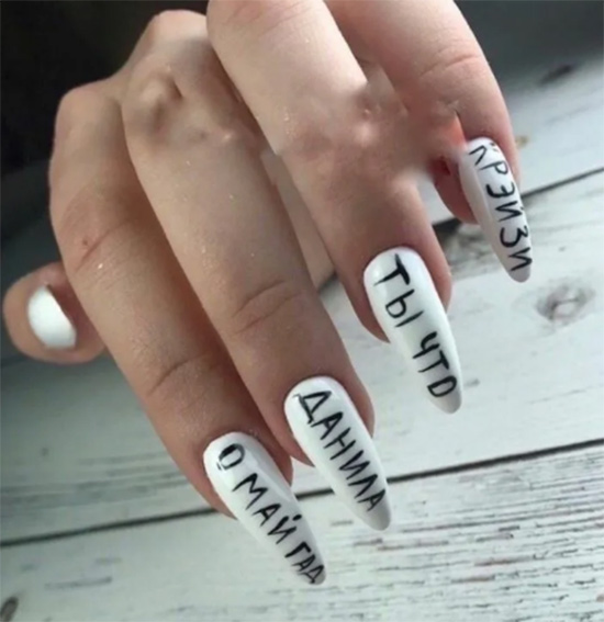 Маникюр на длинные ногти с надписями