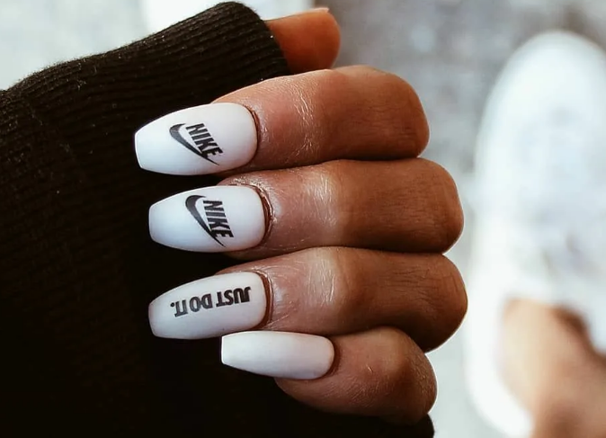Логомания — вот с чего началась мода на маникюр с надписями. Модницы всегда охотились за вещами, на которых были нанесены надписи, свидетельствующие о принадлежности к тяжелому люксу. Надписи могли быть минималистичными или настолько заметными, что трудно определить основной оттенок вещи. Со временем мастера начали предлагать наносить логотипы прямо на пластины ногтей, чтобы модницы не расставались с любимыми брендами в любой ситуации.