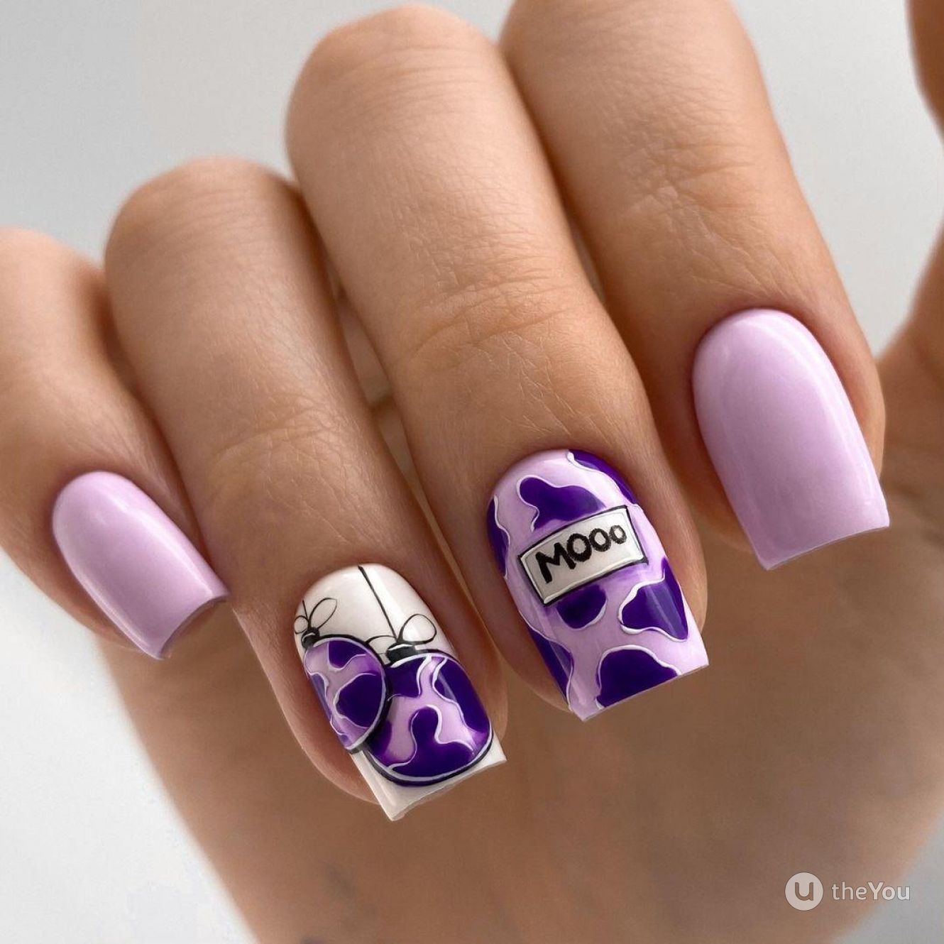 Квадратная форма смотрится четко и стильно. В зависимости от длины можно нанести любую надпись. Круто смотрится маникюр, в котором сочетается геометрический рисунок и математические формулы. Или вы можете добавить лаконичное слово «love» в окружении сердечек или страз.