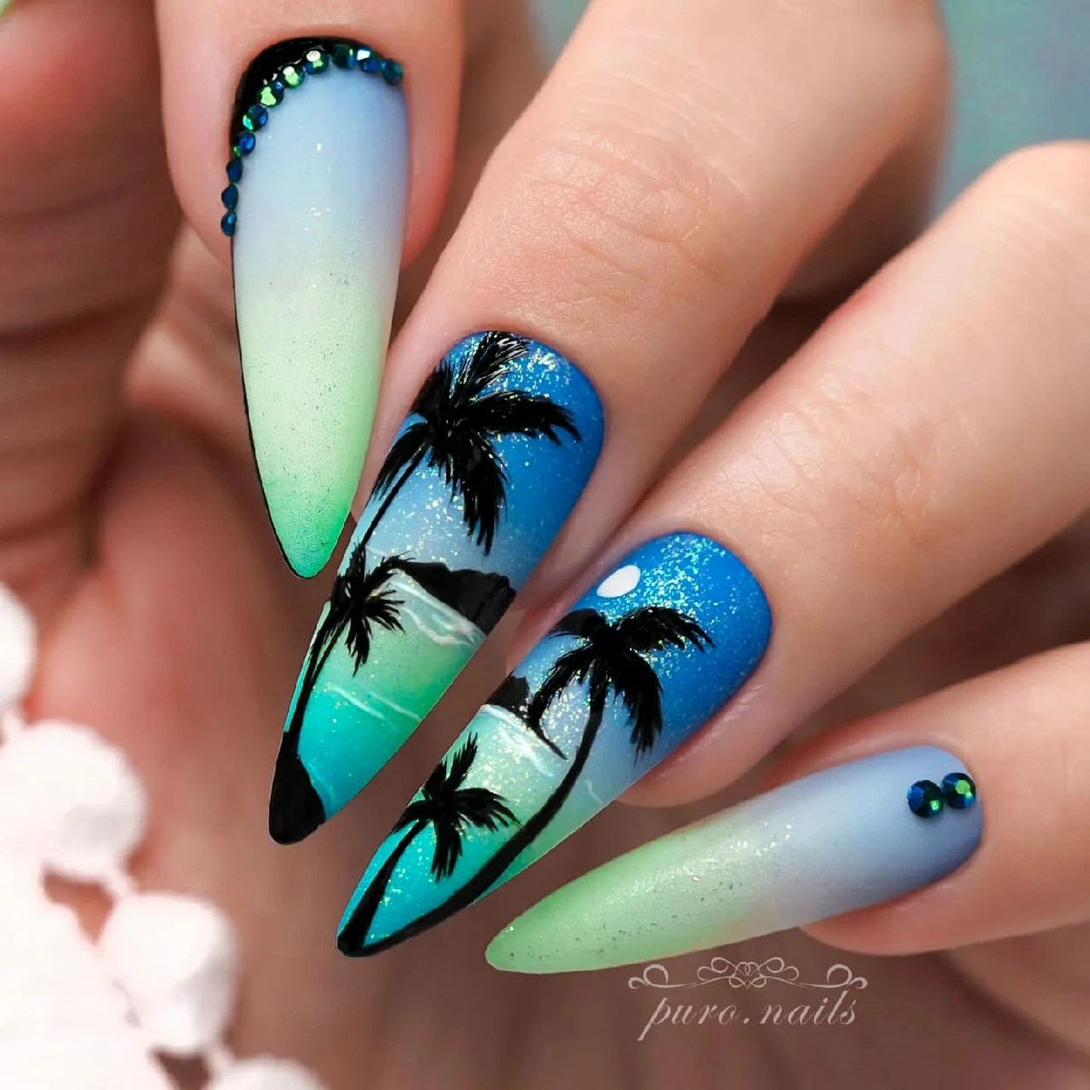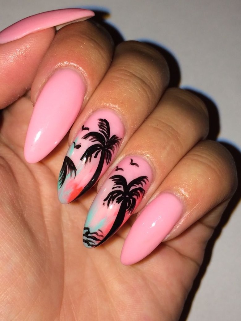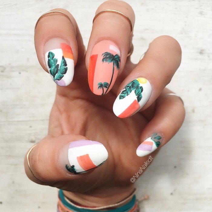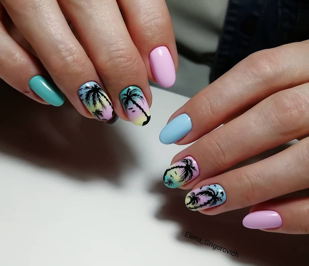 Скоро отпуск, а вы все еще находитесь в поиске идей для маникюра с рисунком пальмы? Мы собрали интересные и необычные варианты, которые вы можете повторить или взять за основу.