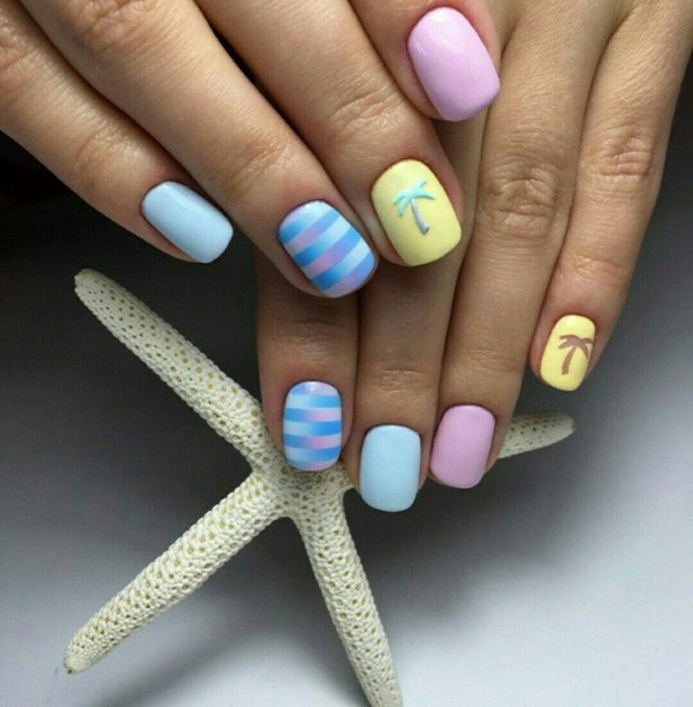 - длина. Летом стоит дать ноготкам отдых и оставить короткую длину. Это практично и удобно, особенно, если вы любите активный отдых;