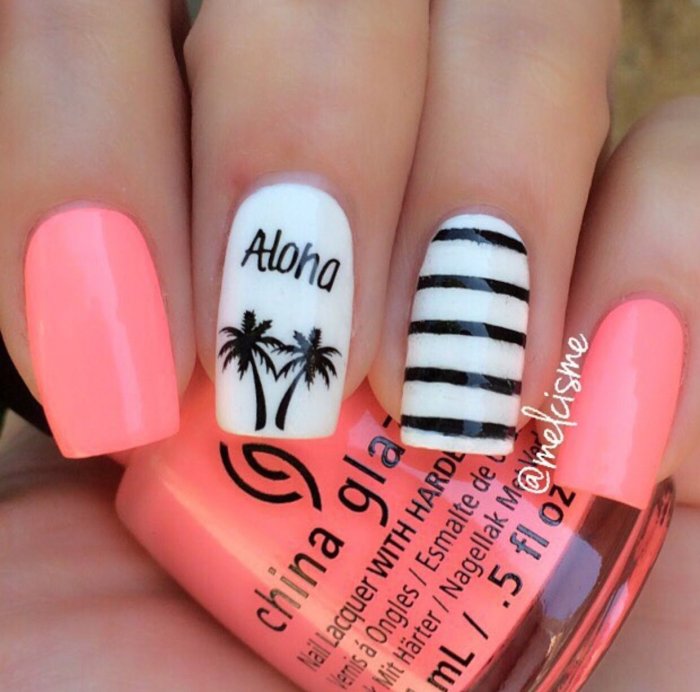 При желании вы можете сочетать пальмовый декор м любыми другими техниками, известными нейл-дизайну. Но не стоит особенно усердствовать. Летний маникюр хорош своей простотой и свежестью. Не нужно перегружать его.