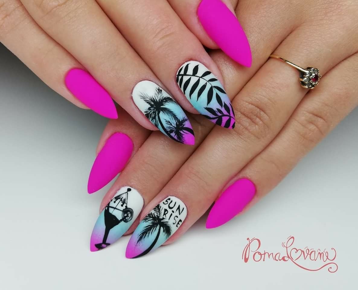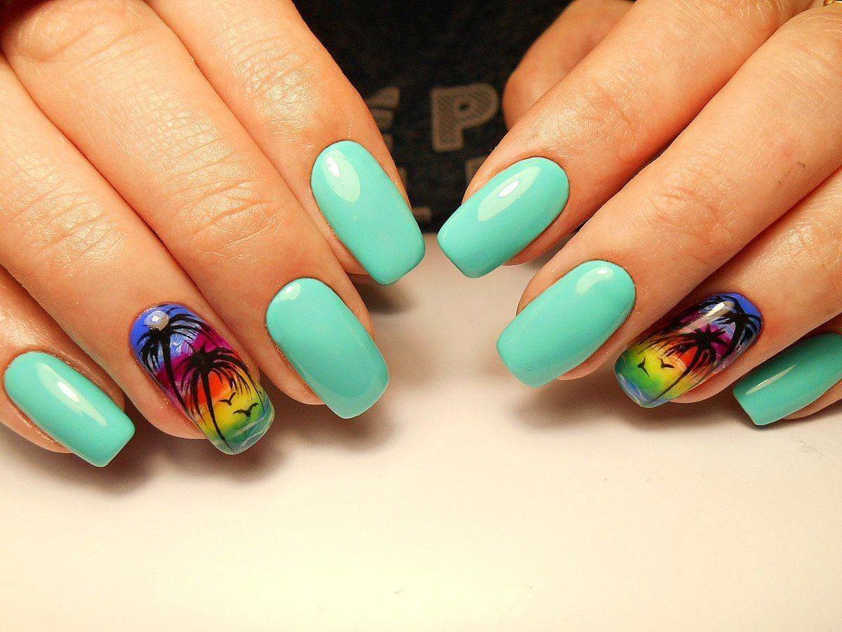 Варианты дизайна маникюра с пальмами великое множество. Все ограничено только вашей фантазией. Вместе с мастером вы можете создавать уникальные картины на ногтях. которые будут напоминать о море и тропических странах. Но иногда именно выбор дизайна отнимает очень много времени. Поэтому мы собрали для вас самые модные тренды, которые будут актуальными в этом сезоне для маникюра с пальмами.