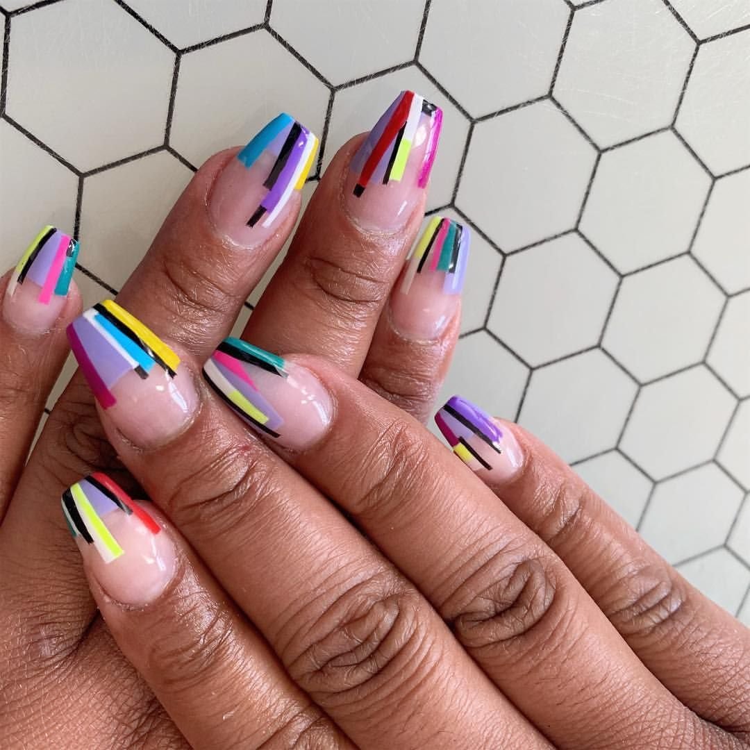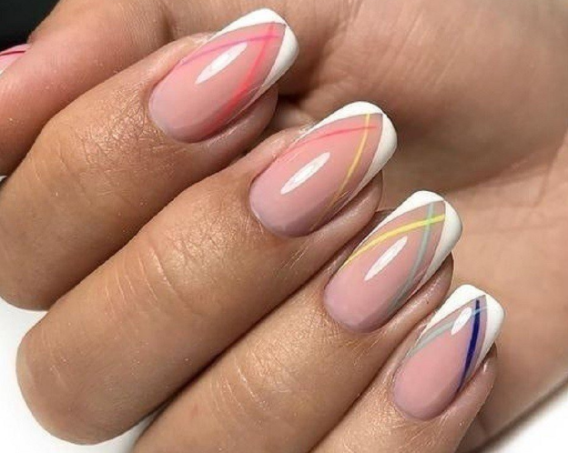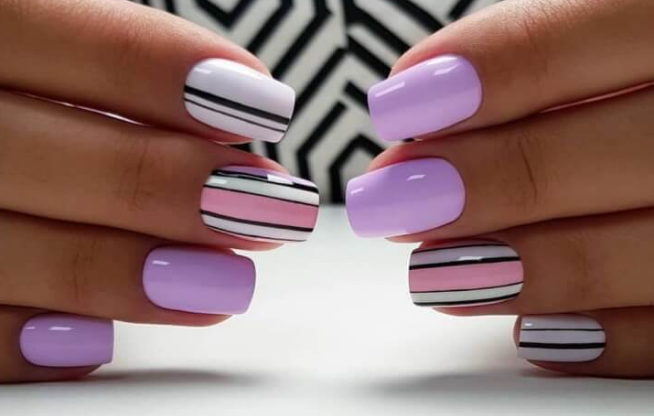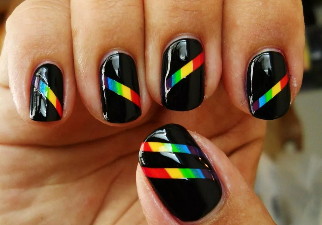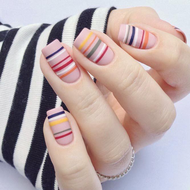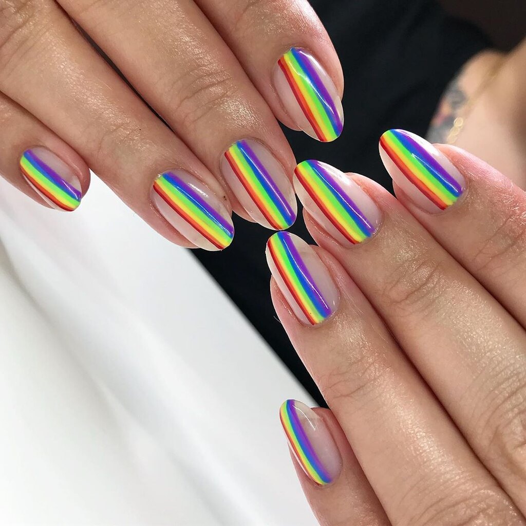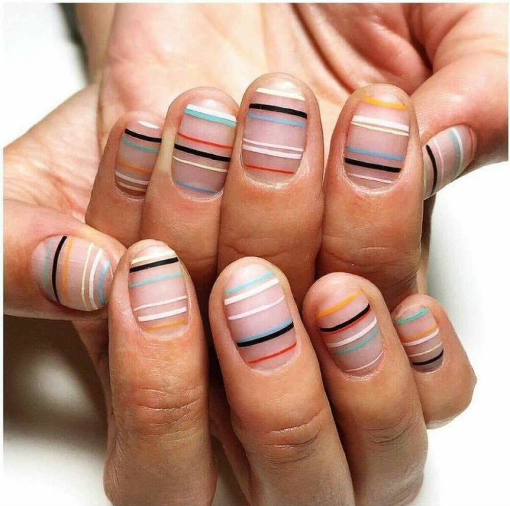 - Дизайн ногтей с разноцветными полосками