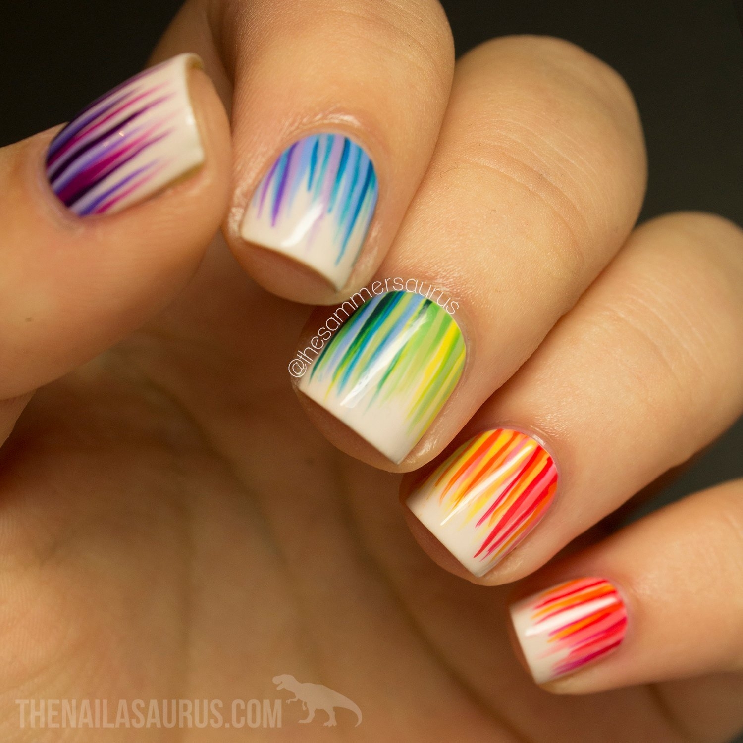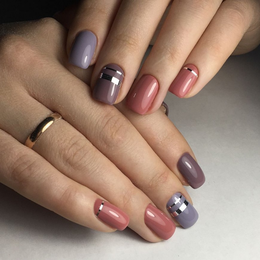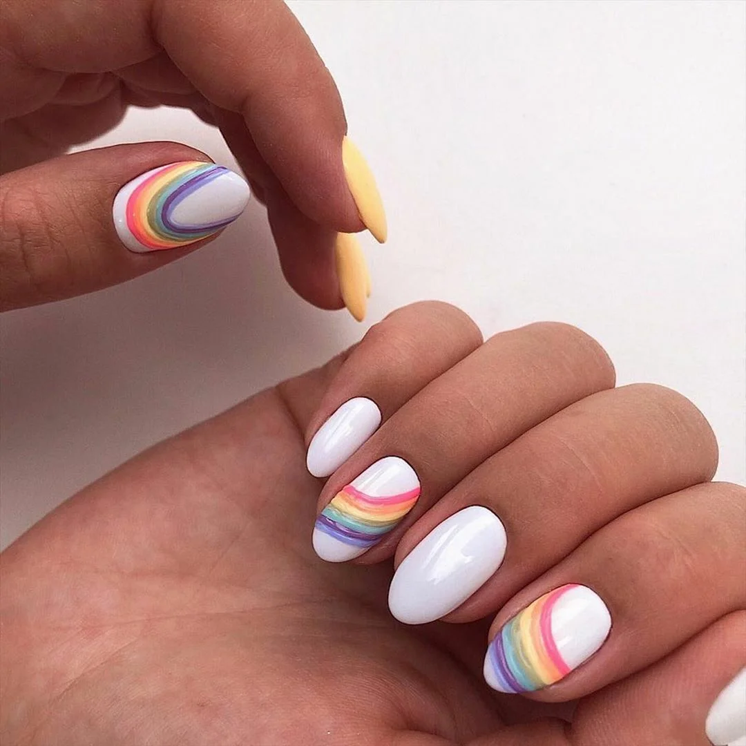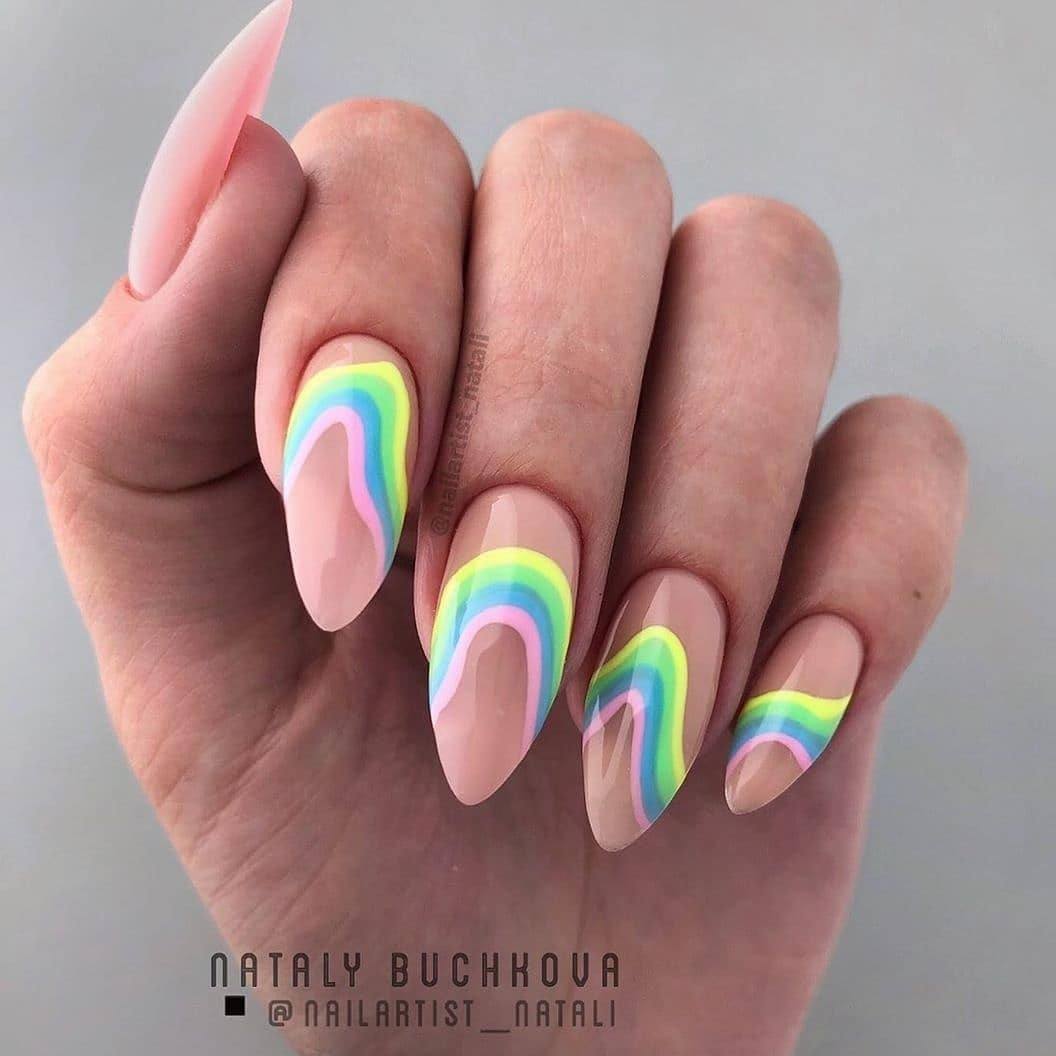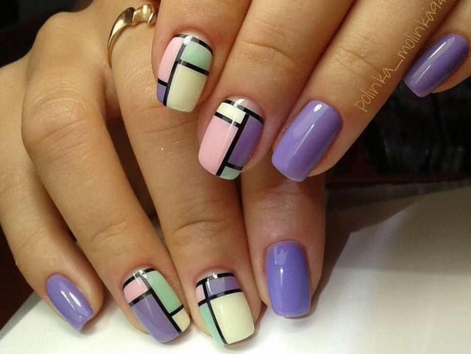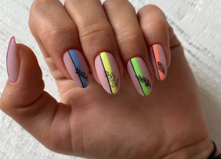 - Дизайн ногтей с разноцветными полосками
