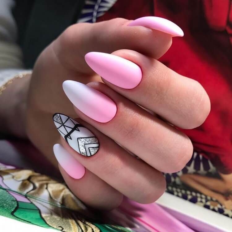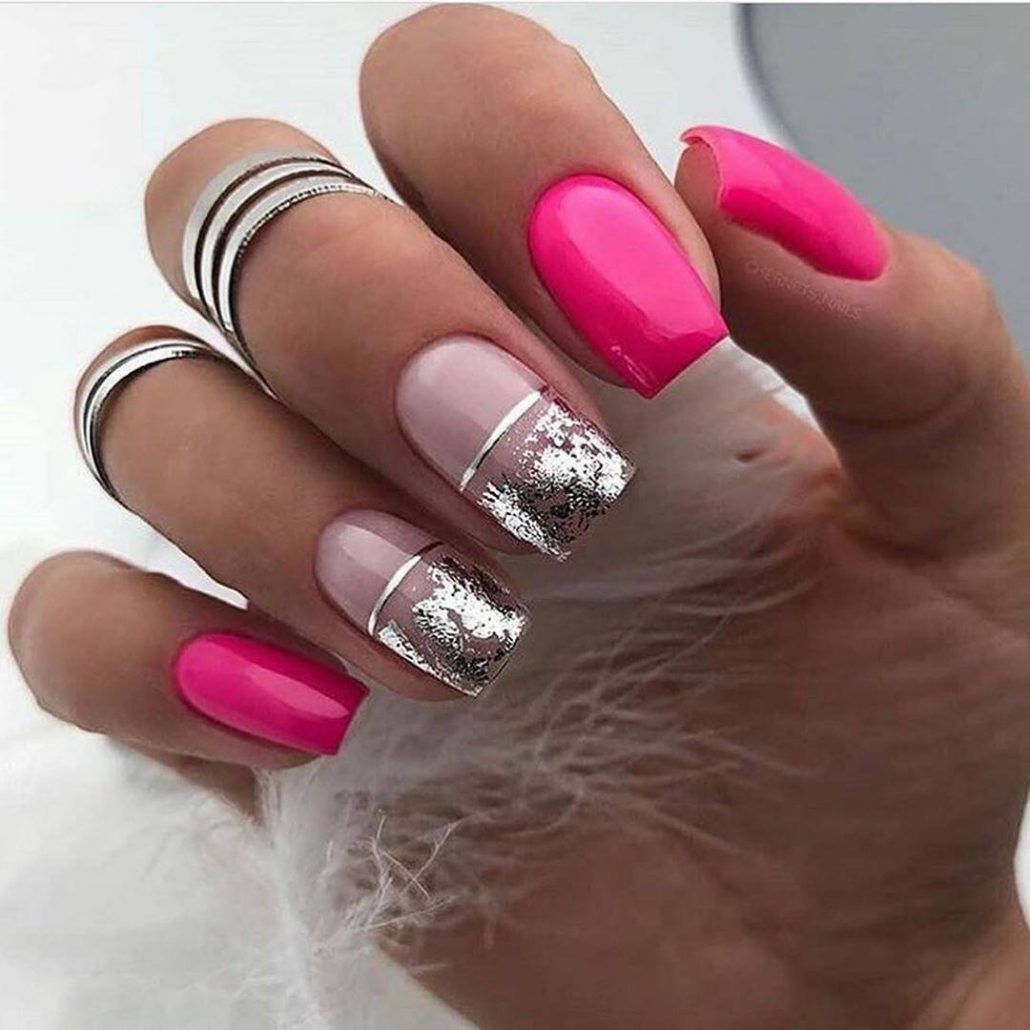 Розовый и серебро — лучшее сочетание по мнению многих нейл дизайнеров. Жидкий металл отлично подходит ко всей гамме оттенка pink.