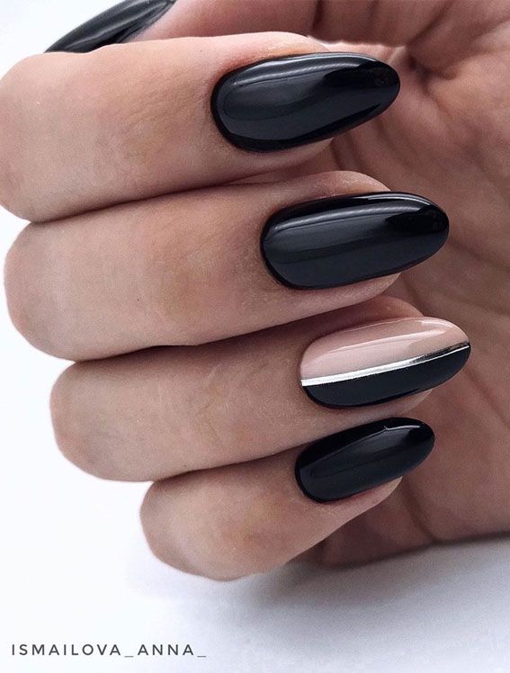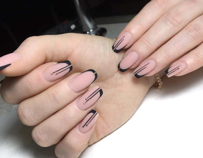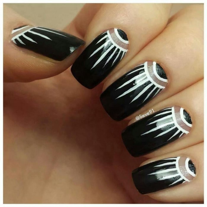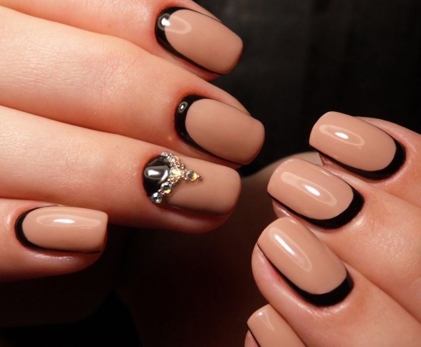 Черный лак многим кажется мрачным и траурным. Долгое время он считался принадлежностью субкультуры — рокеров, готов или эмо. Но современный арт предлагает модницам использовать всю глубину черного цвета для украшения ногтей. Черный френч, тонкие черные полоски на ногтях с прозрачной или нюдовой базой — хороший вариант для офисного стиля.