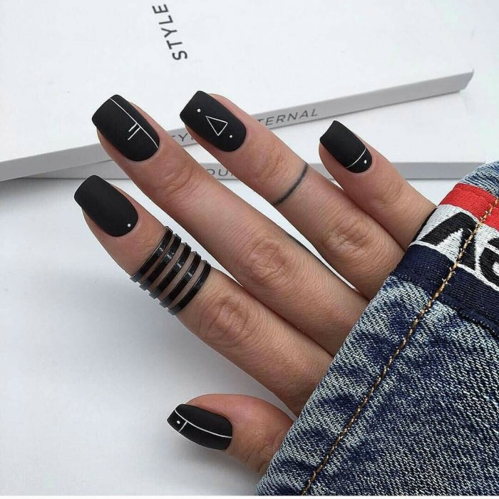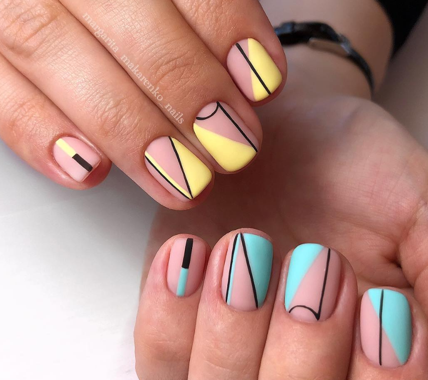 - универсальность. если вам нужно сделать дизайн ноготков, с которым вы можете смело пойти в офис и не затеряться на вечеринке — выбирайте линии. Они могут быть в стиле минимализм или яркой геометрии. Но при этом сделать такой дизайн кричащим или пошлым просто не получится;