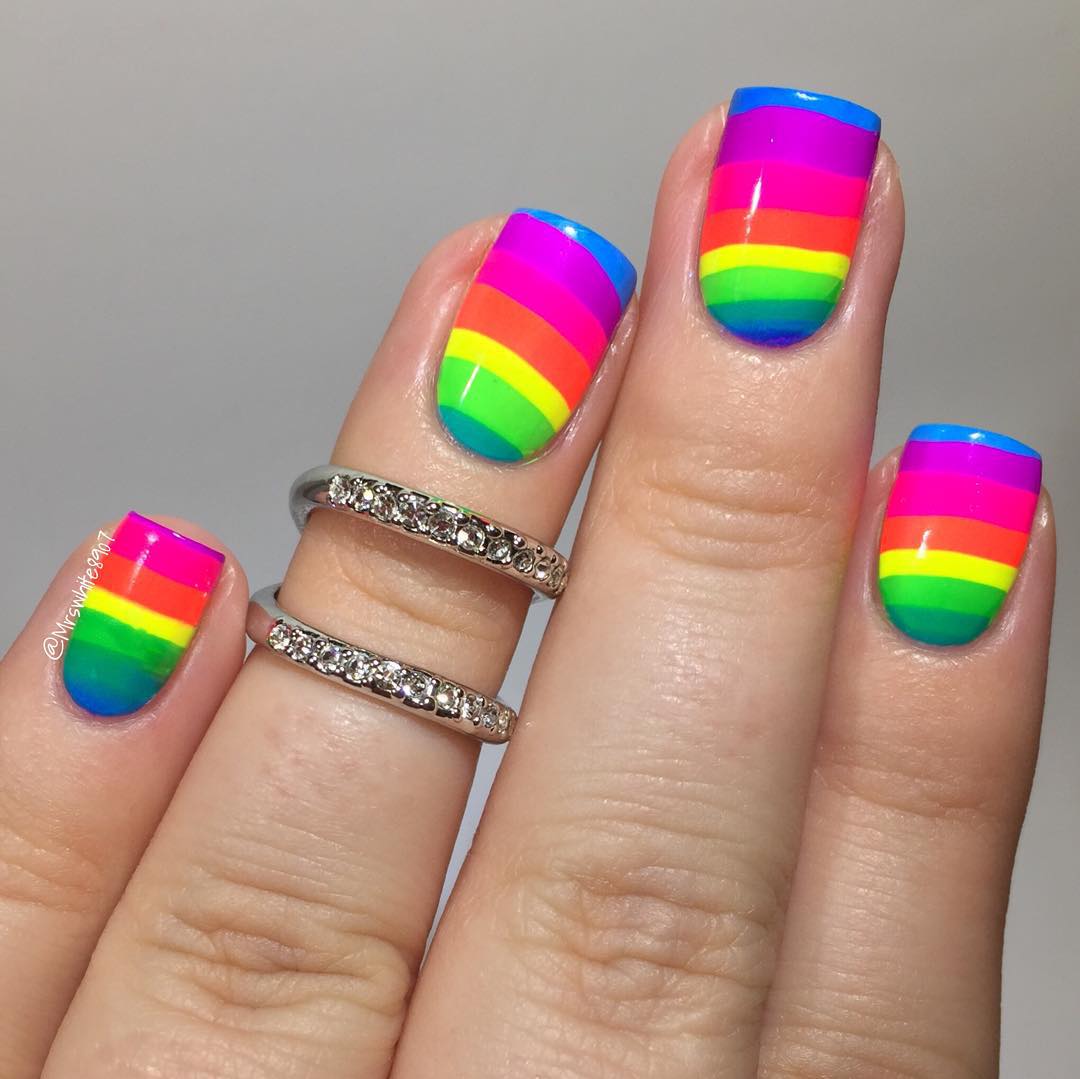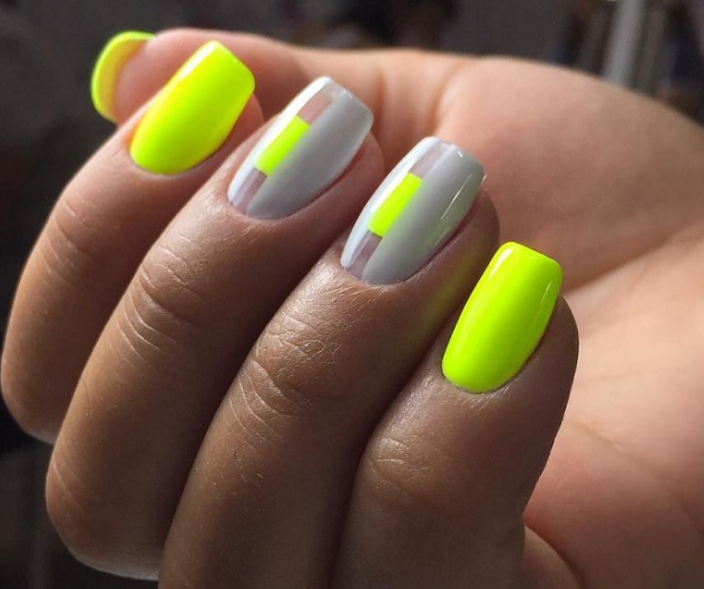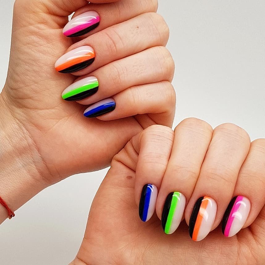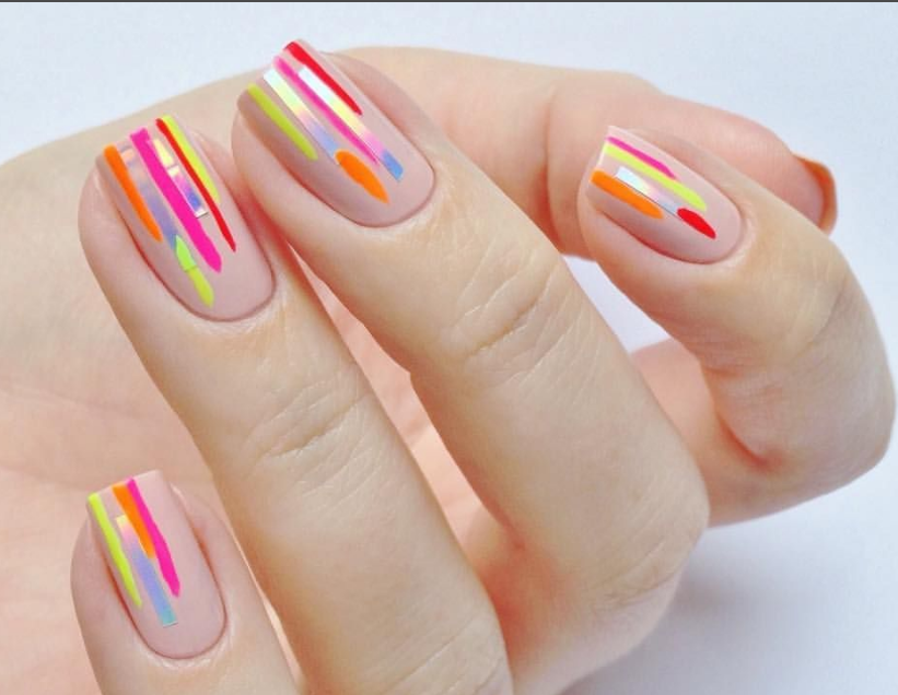 - Маникюр с неоновыми полосками